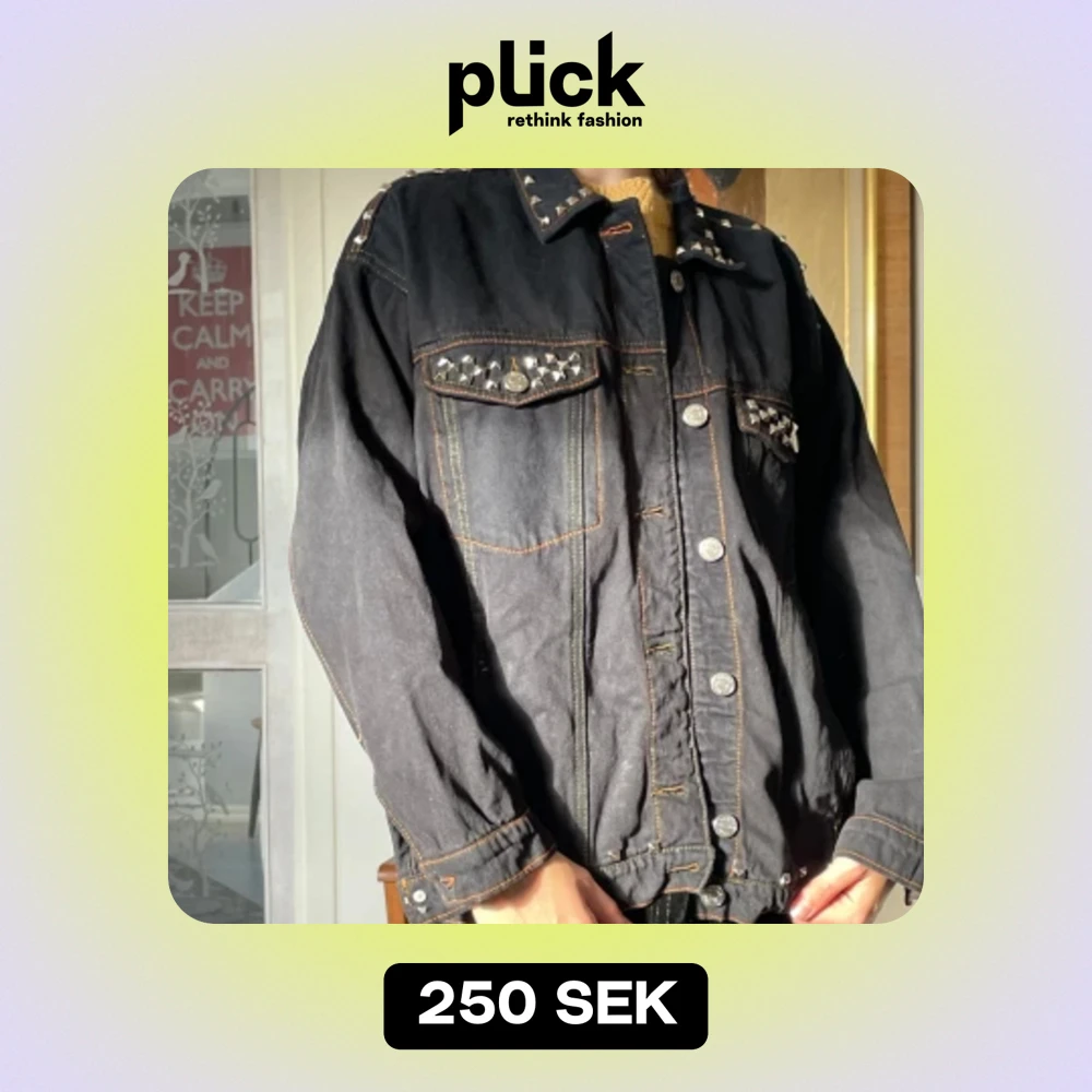 Svart jeansjacka med nitar på olika ställen. cool men inte min stil längre :) pris kan diskuteras❤️