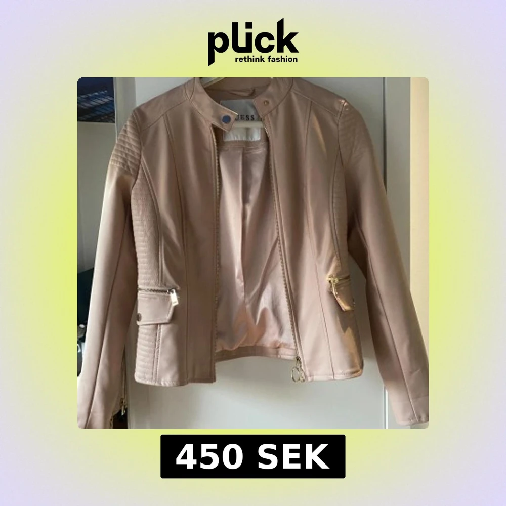 Ljusrosa läderjacka från GUESS, väldigt snygg till sommaren men väljer att sälja då den blivit lite för liten. Knappt använd och i väldigt bra skick