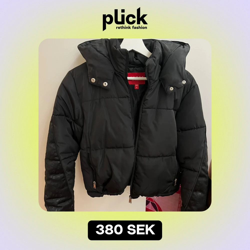 Säljer en snygg svart pufferjacka från Guess i storlek M. Jackan har en cool quiltad design med dragkedja och knappar. Perfekt för höst och vinter, håller dig varm och stilren. Den har en normal passform och är i mycket bra skick. Passar perfekt för både vardag och fest!