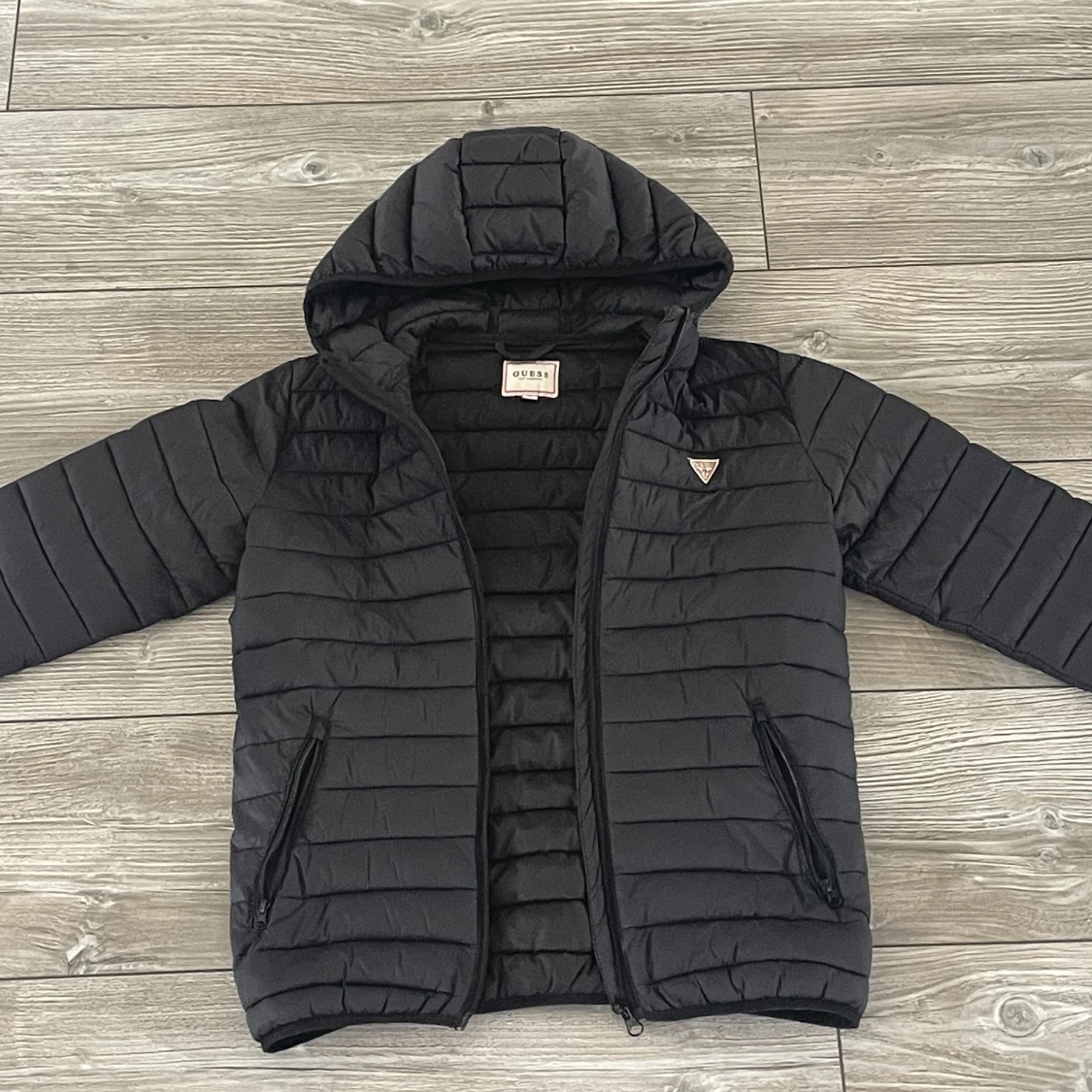 En skit snygg guess dunjacka som aldrig är använd. Den är tunn och perfekt till vår/höst. Storleken motsvarar XS i vuxensize men är perfekt till barn med size L också. Kan mötas upp eller frakta.