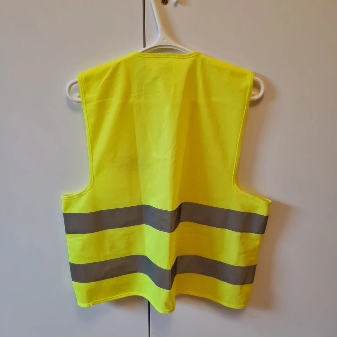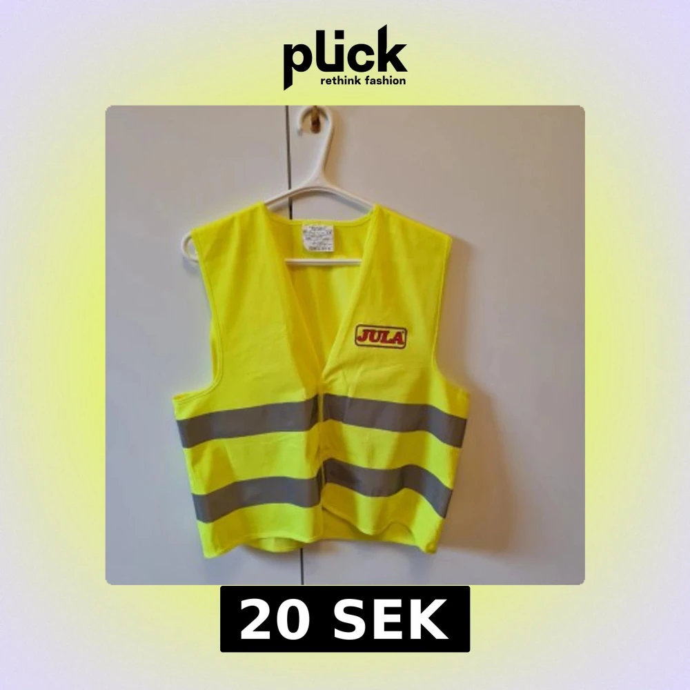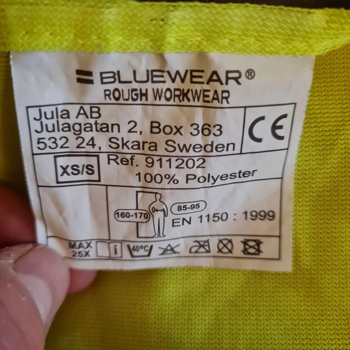 Reflexväst från Bluewear med Jula-logga, tillverkad i 100% polyester. Västen är knallgul med två breda, horisontella reflexband runt midjan.