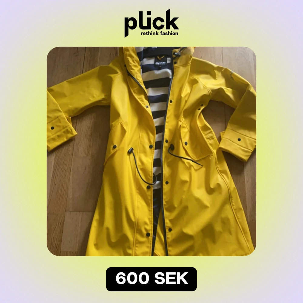 Säljer en snygg gul regnjacka från Jacson. Perfekt för regniga dagar med sin långa design och praktiska huva. Jackan har knappar och dragsko i midjan för justerbar passform. Den är långärmad och har en klassisk stil som funkar året runt.
