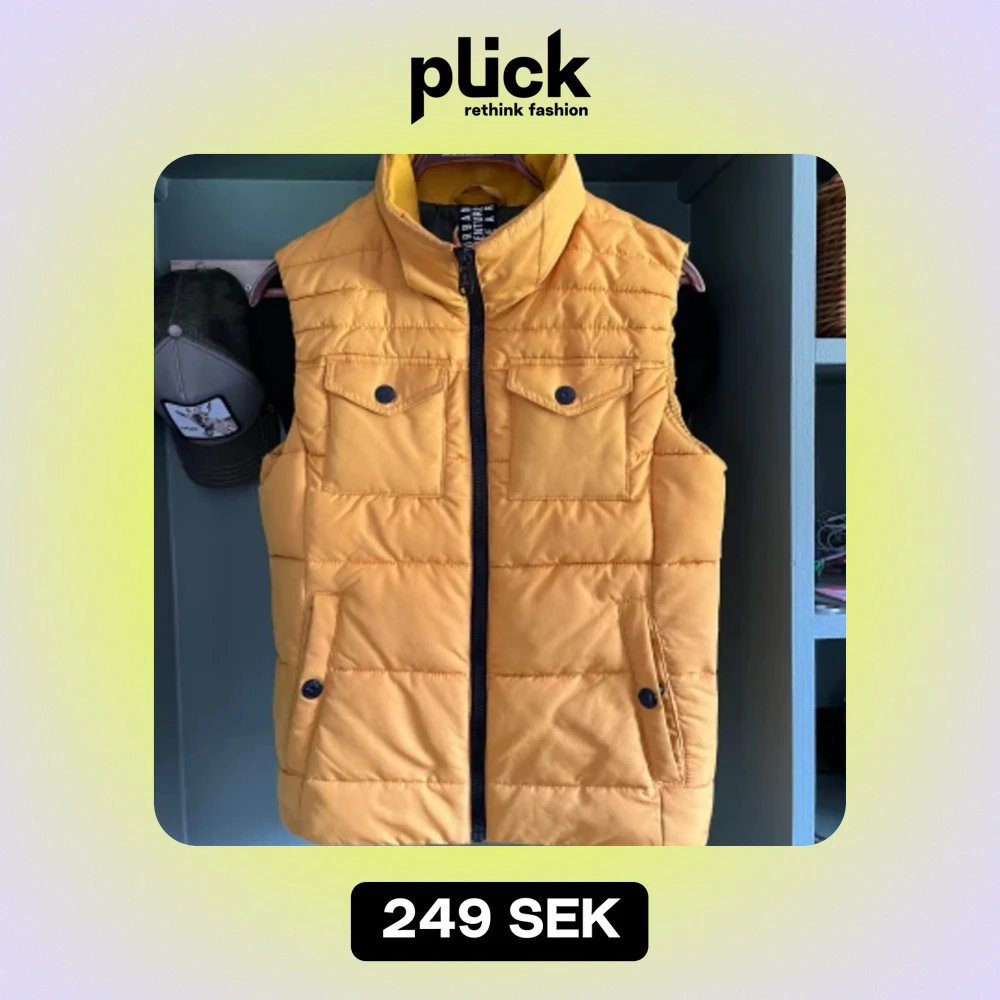 Säljer min gula S.Oliver väst för 249kr. Använd endast ett fåtal gånger och är i väldigt bra skick. Huvan är avtagbar och storleken är S.