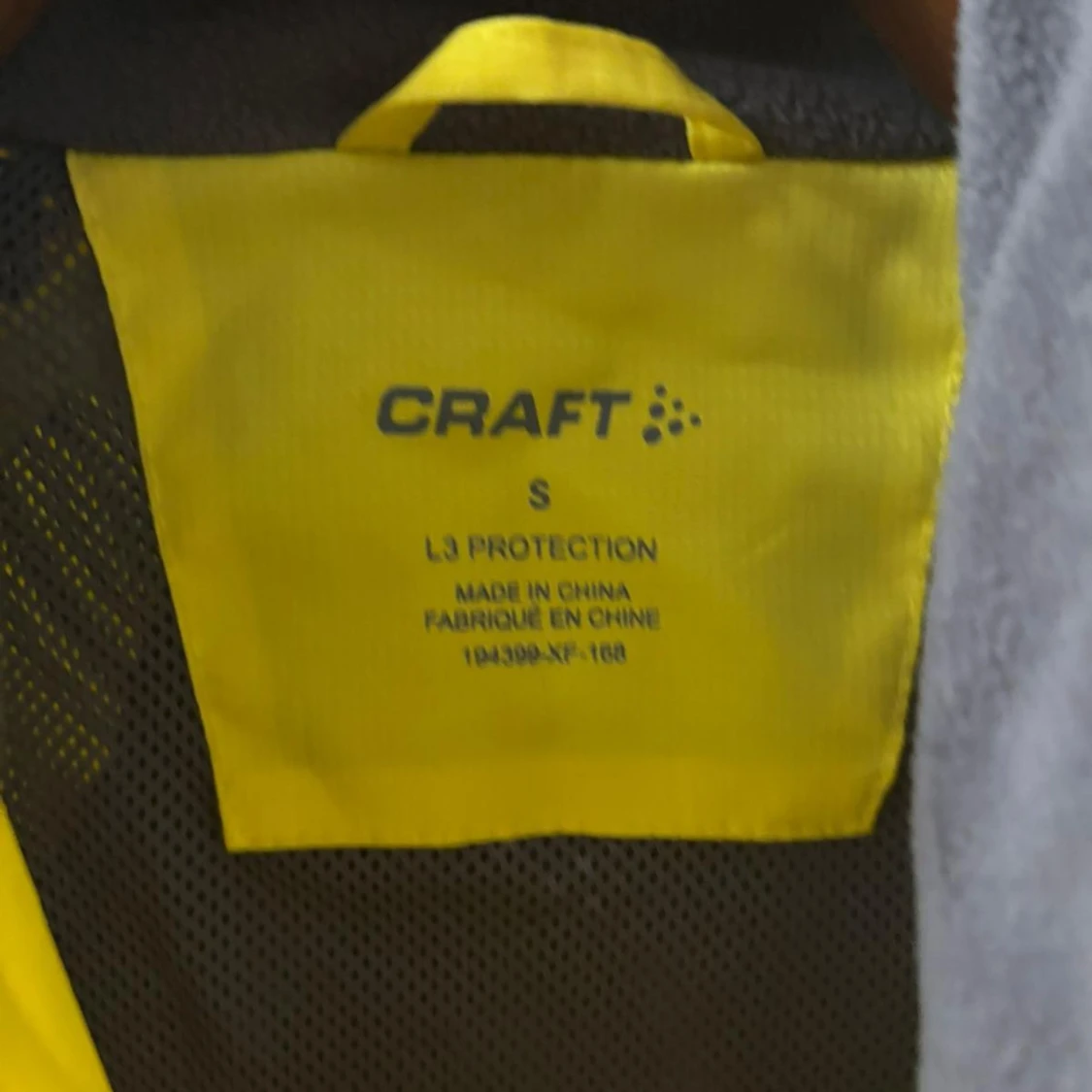 Sportig gul vindjacka från Craft med grå detaljer och meshfoder. Jackan har dragkedja framtill, elastiska muddar och praktiska fickor med dragkedja. Perfekt för utomhusaktiviteter när du vill sticka ut och hålla dig skyddad mot vinden. Det är en cykel jacka.