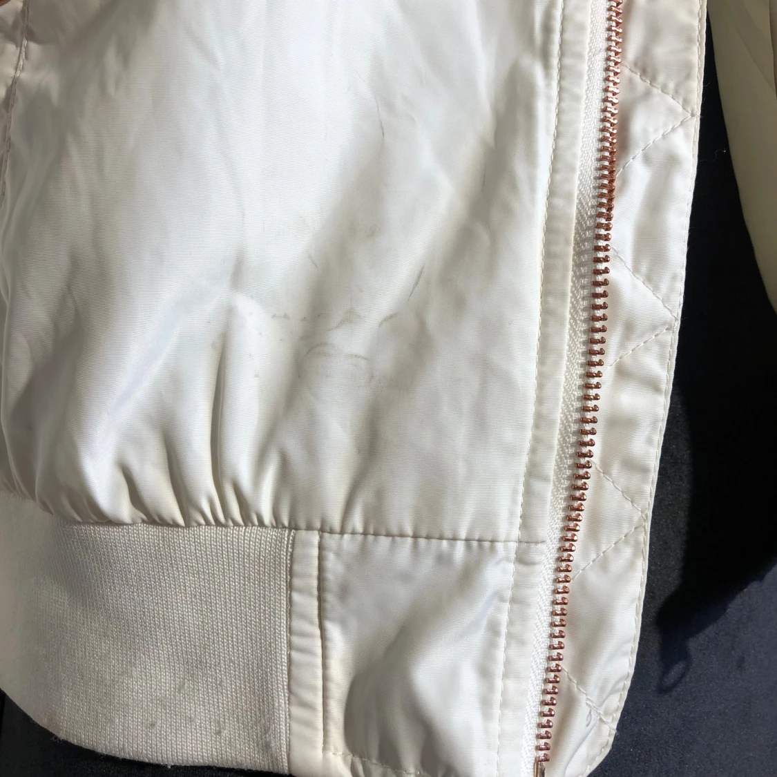 Har lite fläckar men i helhet en fin jacka. Längd ca 55cm. Ärmlängd ca 65cm. Pris: 10kr