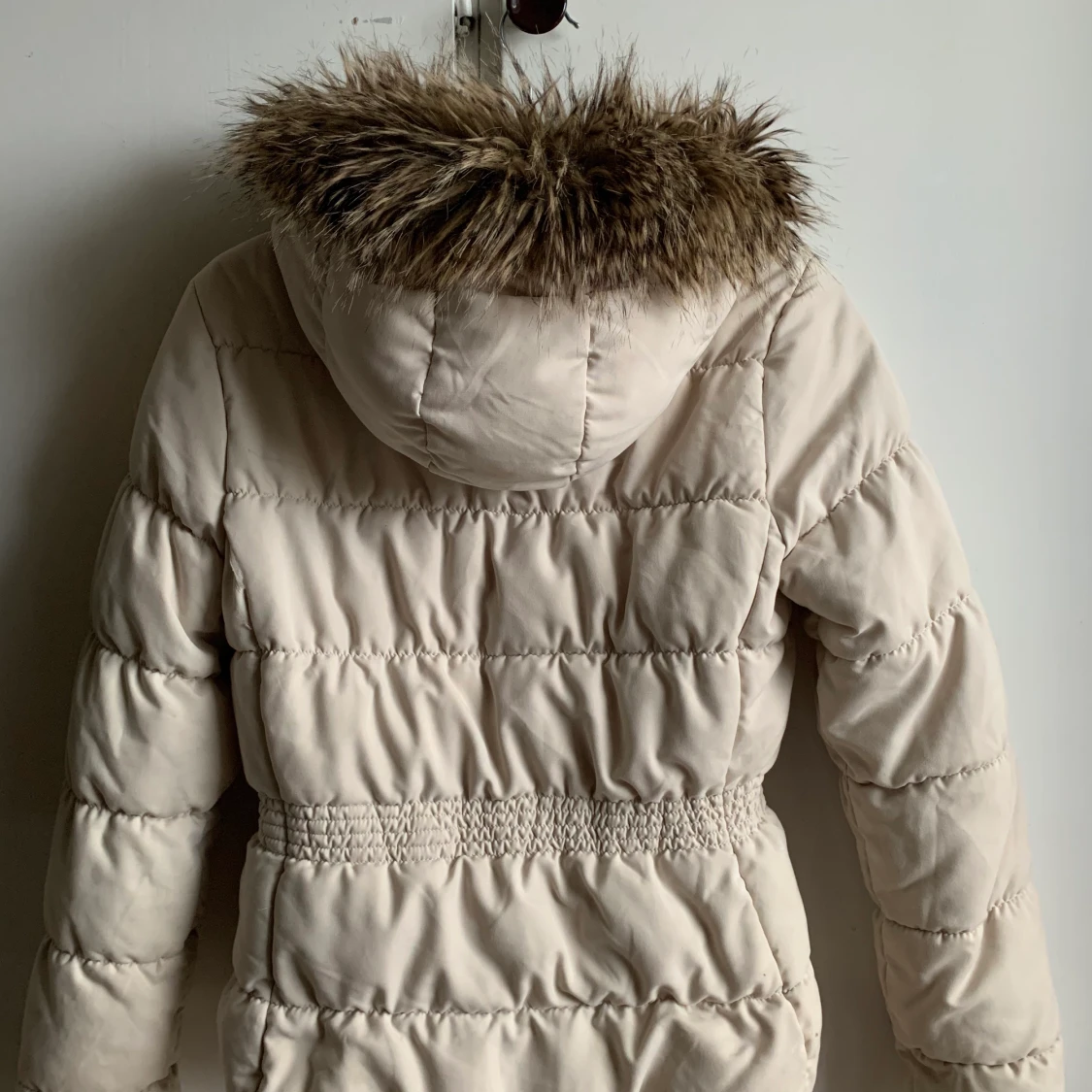 En vinter/vår dunjacka (inte riktigt dun) som går ner till strax över höfterna. I bra skick, köpt från H&M