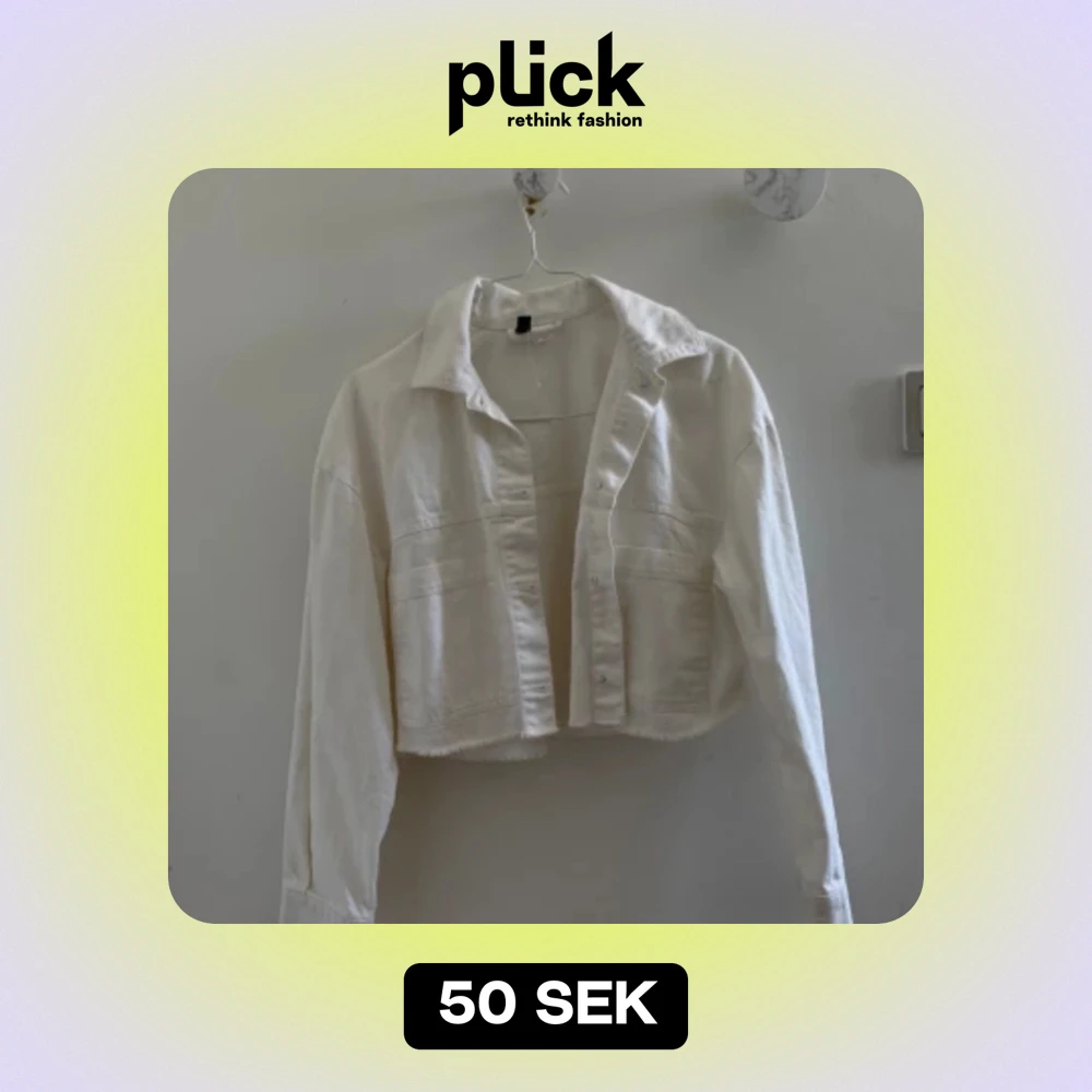 Vit croppad jeans jacka från HM Divided i storlek S. Använt bara 1 gång och är i jätte fint skick! Säljer den för att jag har bytt stil och inte använder jackan längre.
