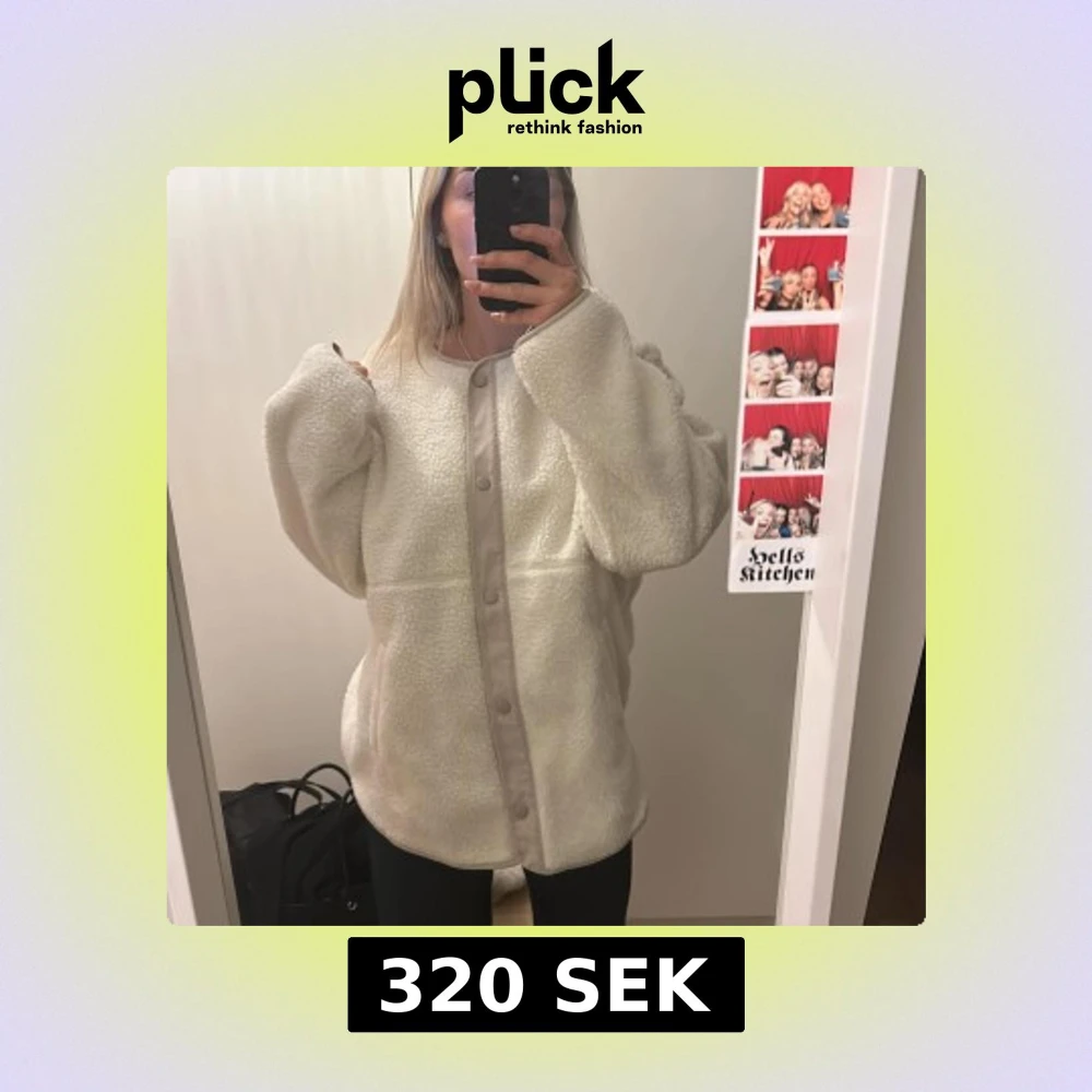 Mysig vit teddyjacka från H&M med knappar framtill. Jackan har en rund halsringning och långa ärmar, perfekt för kyliga dagar. Pile Jacka lappen sitter kvar aldrig använd