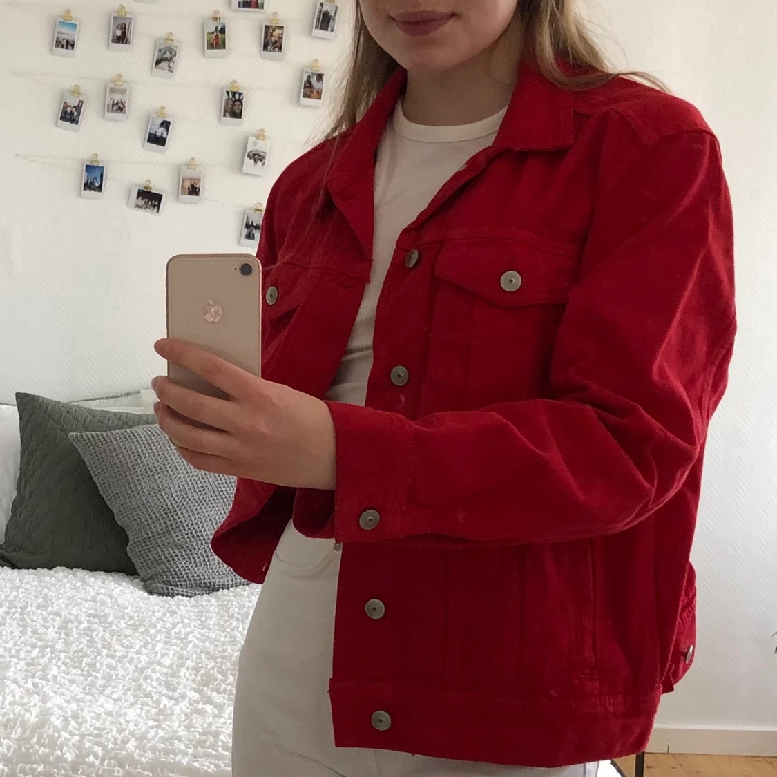 Snygg röd jeansjacka från hm. Bra skick!!