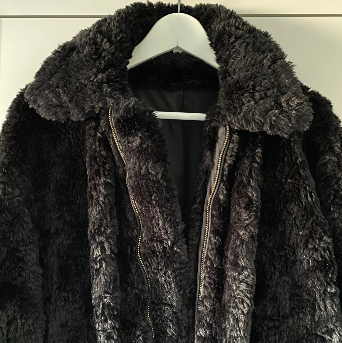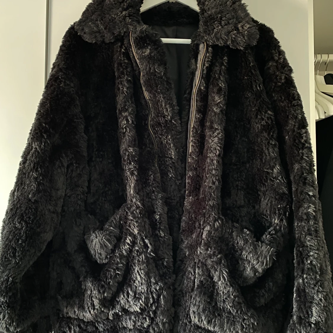 Svart Teddy jacka, som ny, från H&M i storlek s/m. Knappt använd, så jättefint skick! Mjuk och härlig att ha på sig. Stora fina fickor framtill med dragkedja som knäppning. Såldes slut fort! Finns fler bilder att få