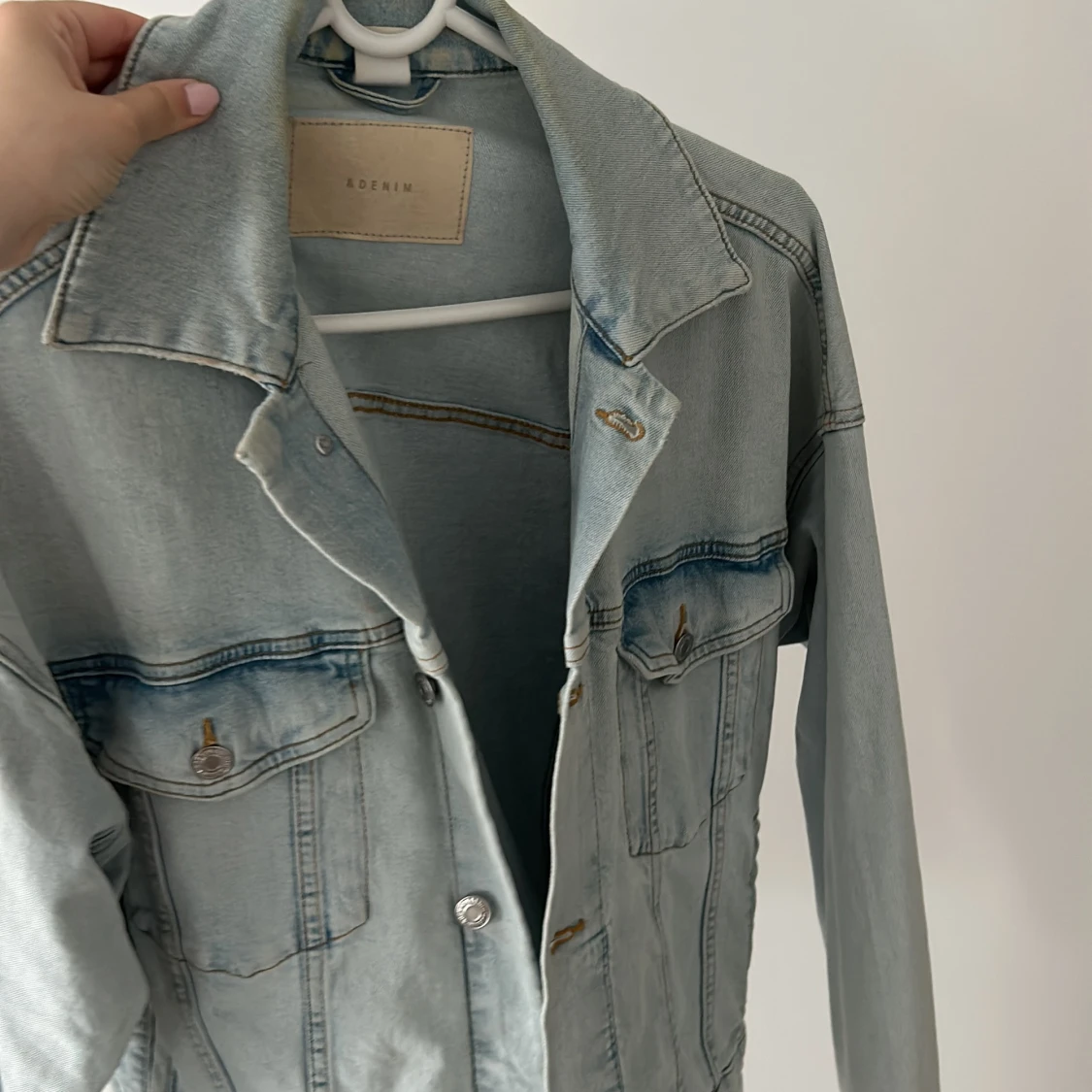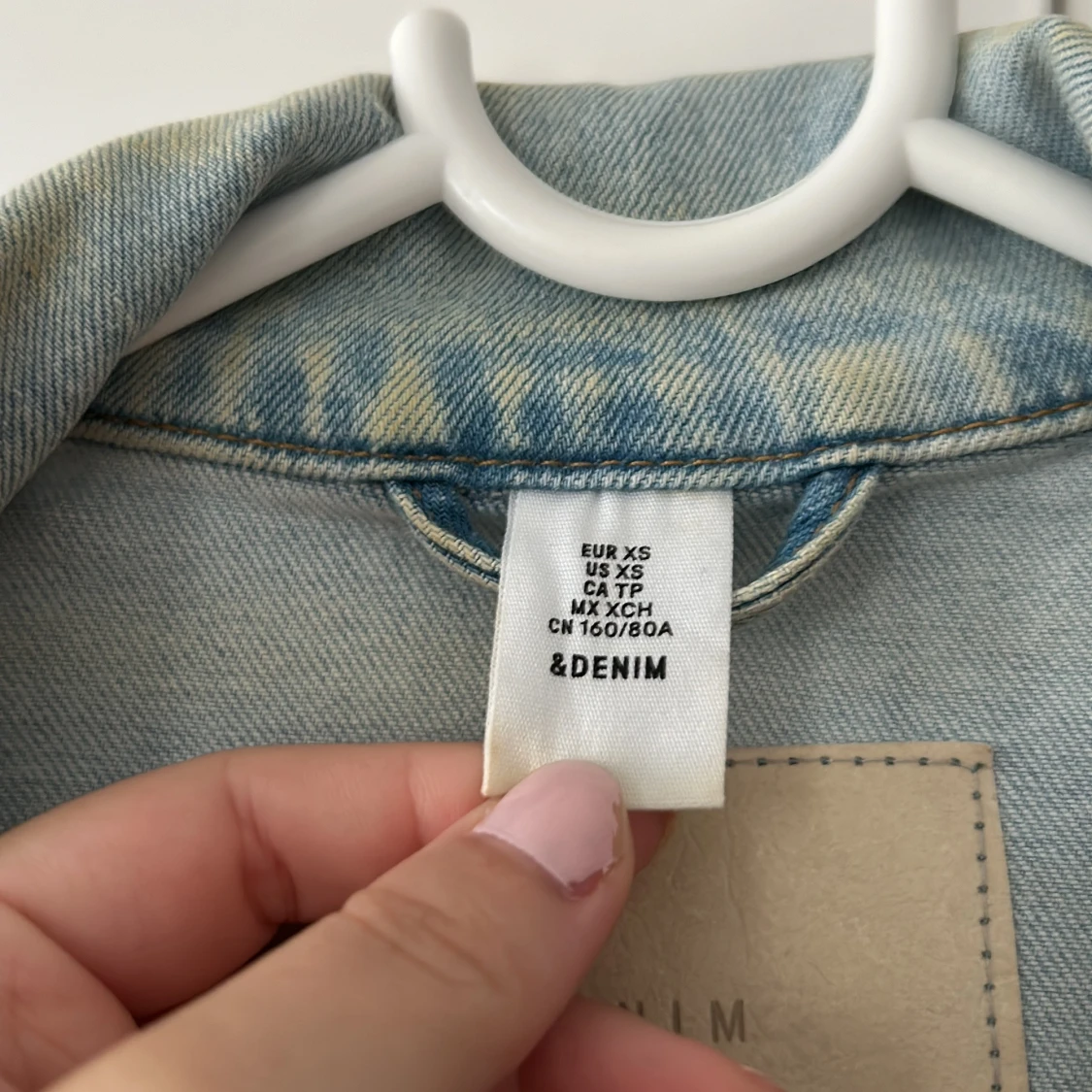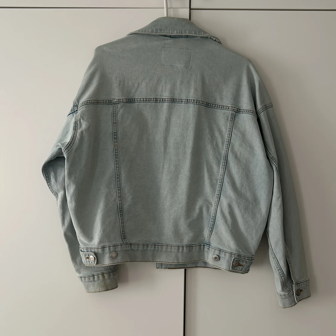 Snygg oversize ljusblå jeansjacka från H&M i storlek XS. Klassisk modell med två bröstfickor med knappar, silverfärgade detaljer och avslappnad passform. Perfekt att slänga över en hoodie eller t-shirt för en chill look. Säljer 300kr, ordinarie 599kr