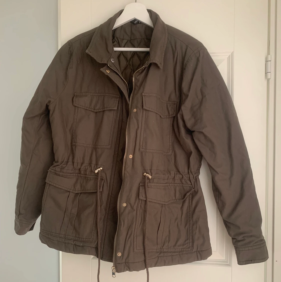 Militärgrön jacka (vår/höst) i storlek 44 men är mer som en S/M. Markerad i midjan och från HM. Sparsamt använd så väldigt bra skick. Kan mötas eller skickas med Postnord skicka lätt.