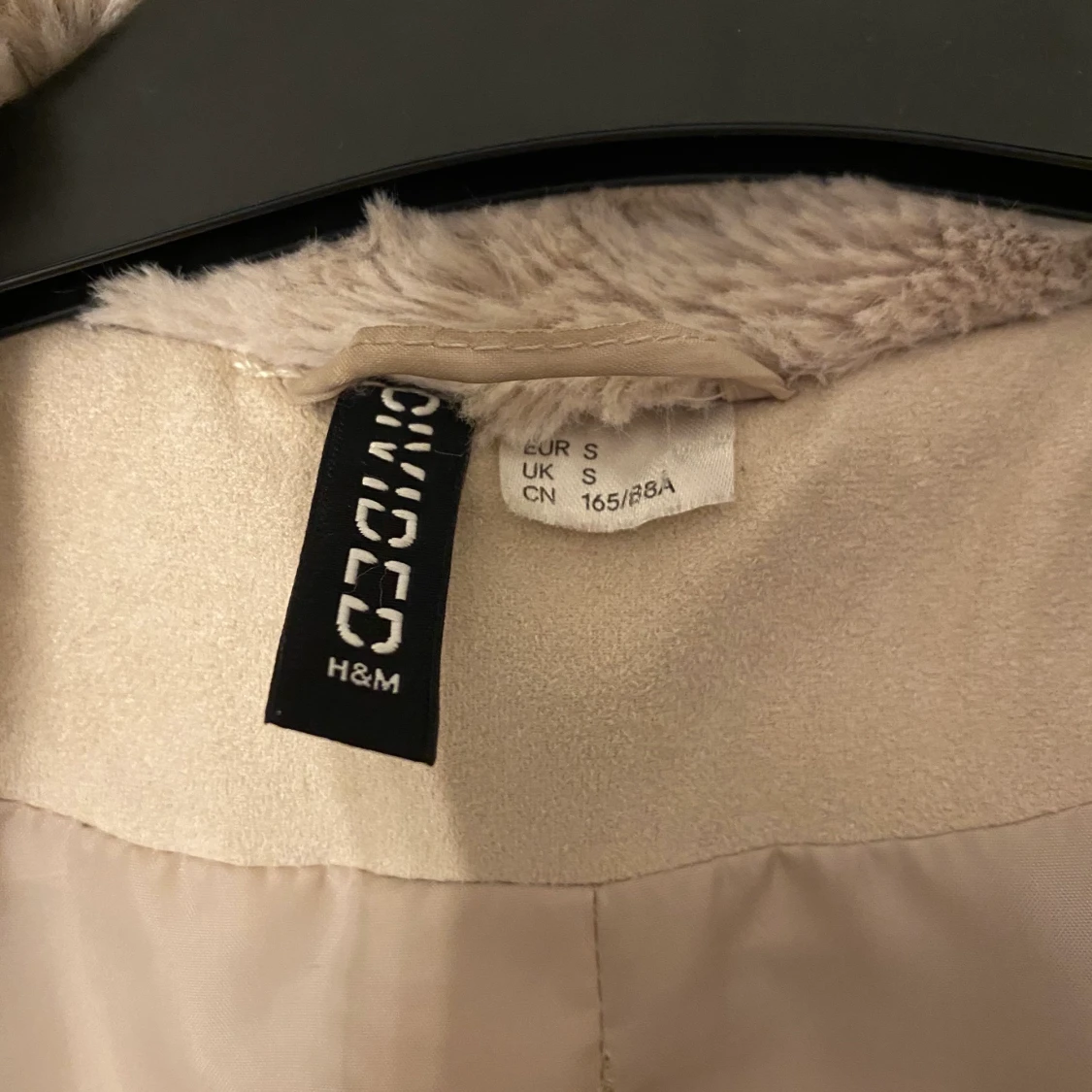 Mysig pälsjacka i ljus beige, ganska kort modell. Med knappar och två fickor på framsidan🦋🦋