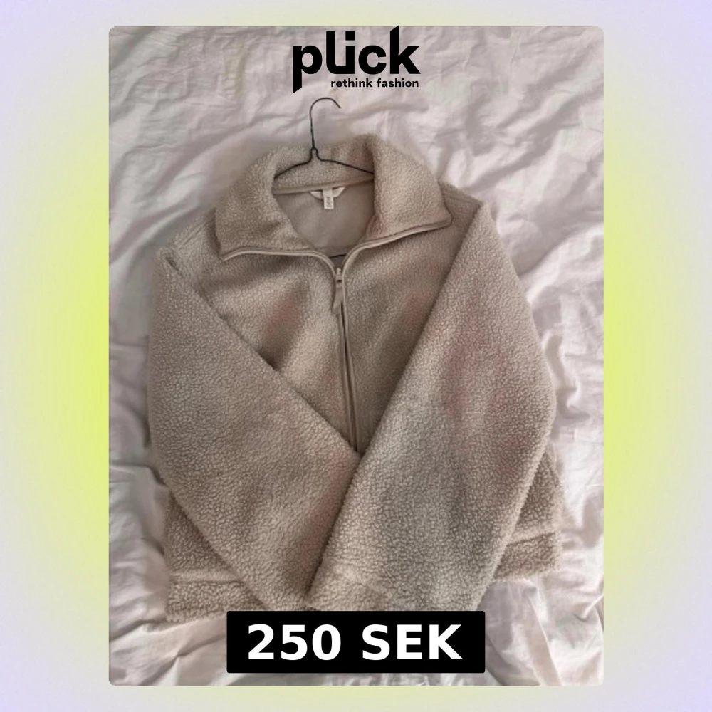 Mysig beige teddyjacka från H&M med hög krage och dragkedja framtill. Jackan är långärmad och har en loose passform, perfekt för kyliga dagar. Tillverkad i mjukt syntetmaterial som ger en fluffig och trendig look. Har lite fläckar men absolut inget man tänker på!🤍
