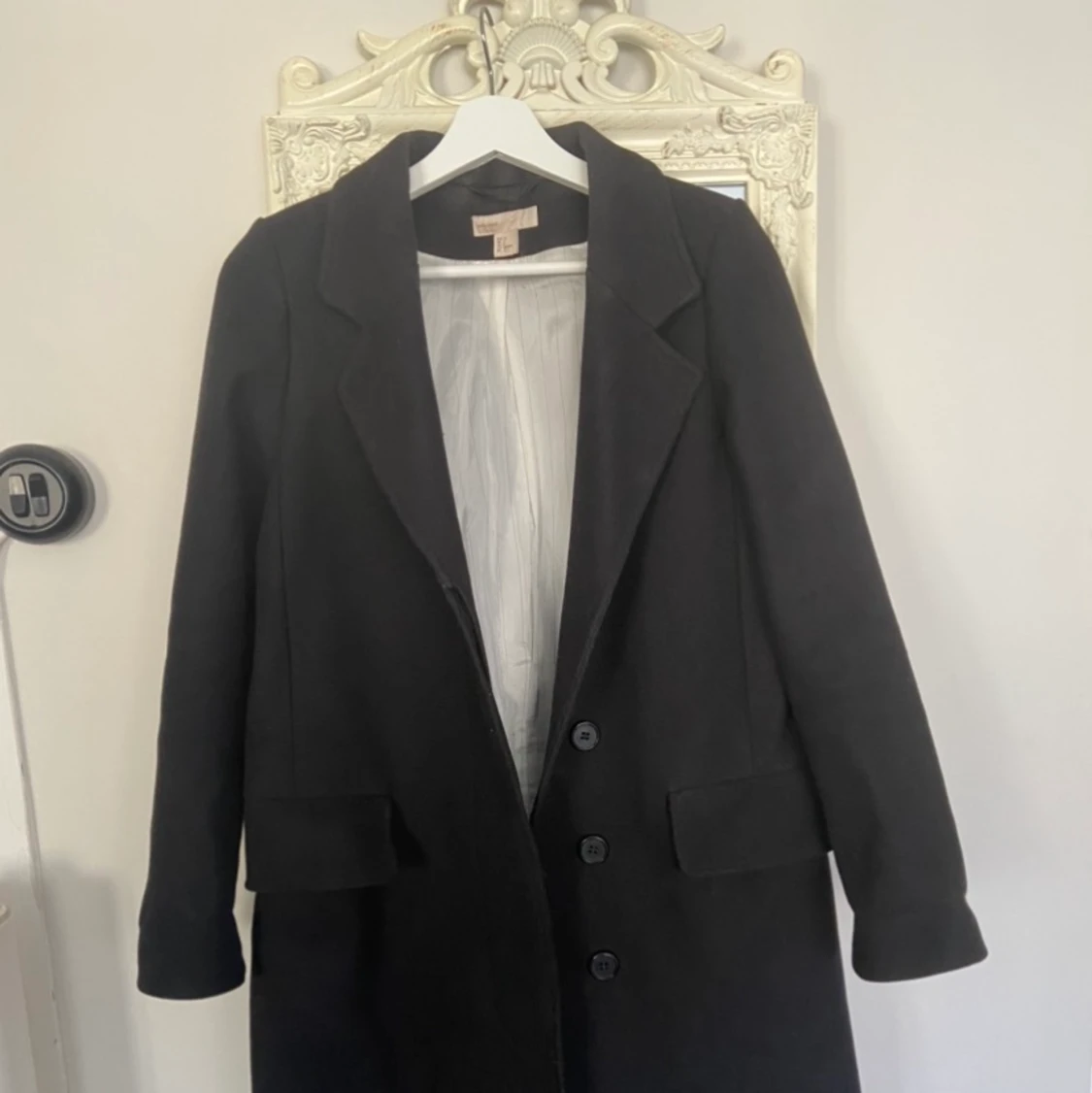 En svart ullkappa, knälång, storlek 34, pris 400, kan diskuteras, köparen står själv för frakten
