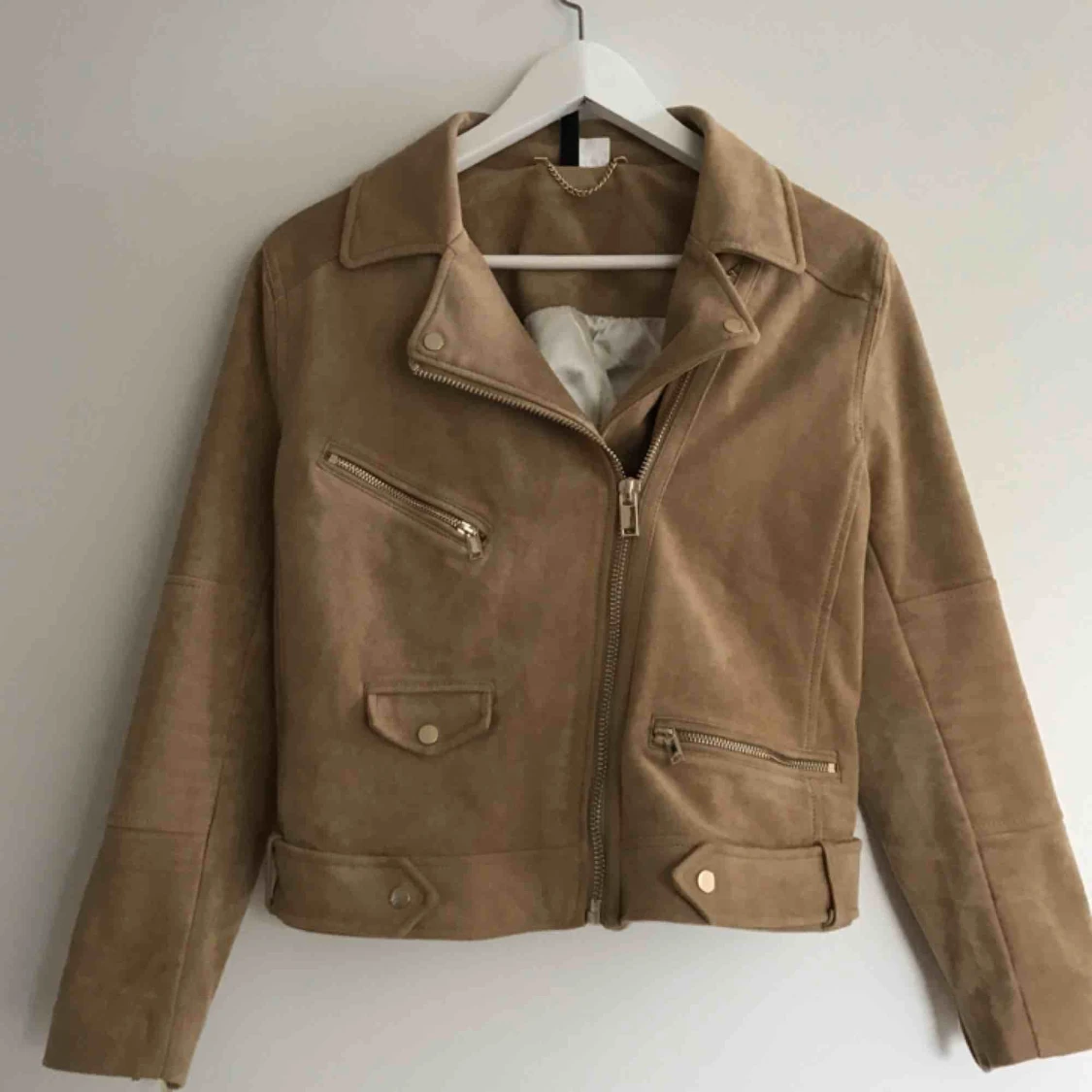 Bikerjacka i imiterad mocka. Oanvänd. Detaljer i guld.