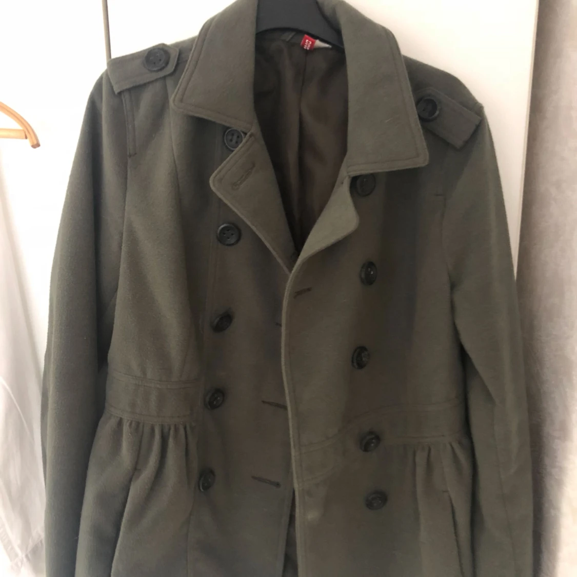 Superfin grön jacka från hm i storlek 40 men sitter som en 36 skulle jag säga. Använd en gång, i väldigt fint skick. Frakt tillkommer.