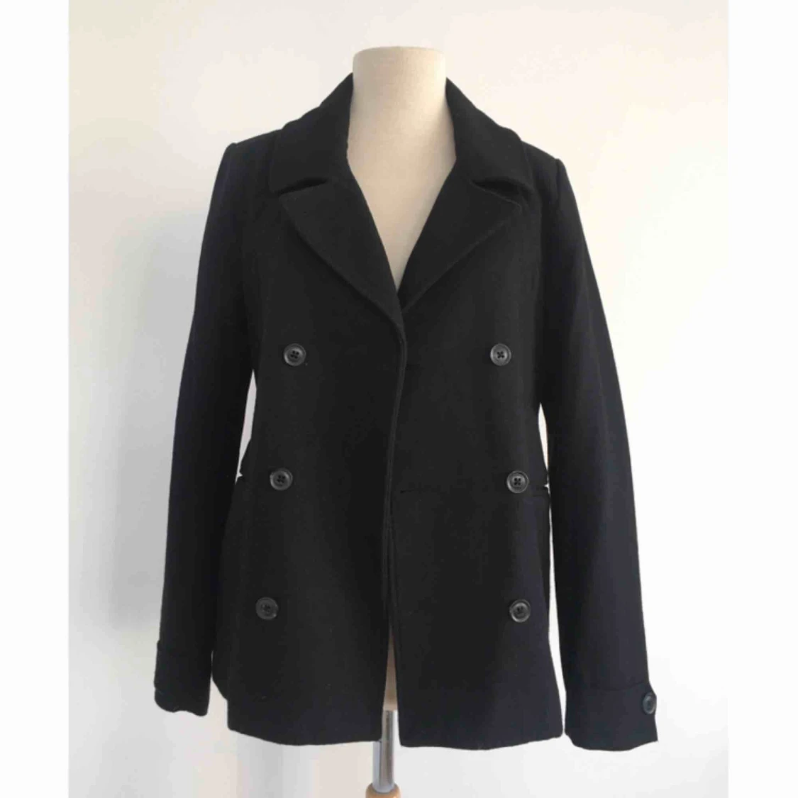 Dubbelknäppt peacoat i ullblandning. Märke: H&M Storlek: 164 (barnstorlek), men passar lätt en XS. Skick: Mycket gott. Använd endast ett fåtal gånger. Pris: 200 kronor eller bud. Frakt: Betalas av köparen.