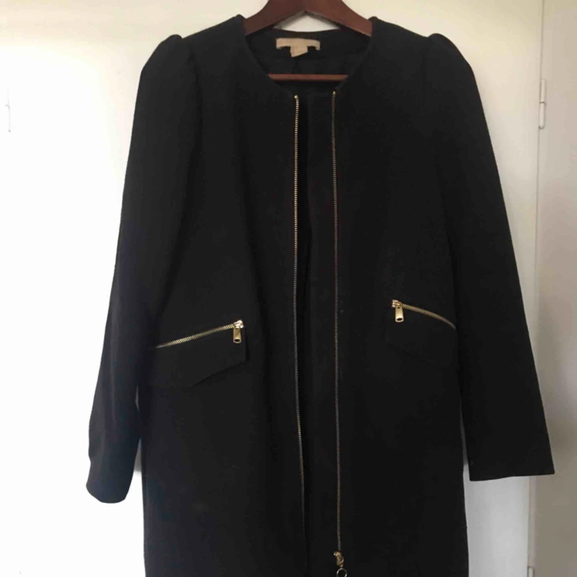 Lång höst kappa. Svart, använd en del gånger finns en liten fläck.