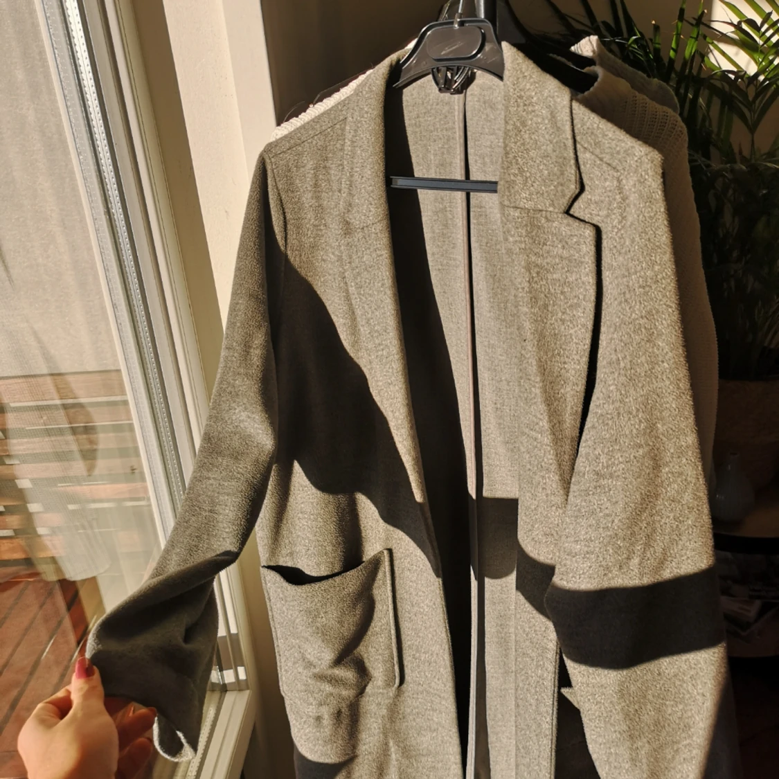 Snygg kappa i ljusgrå. Ingen knäppning.
