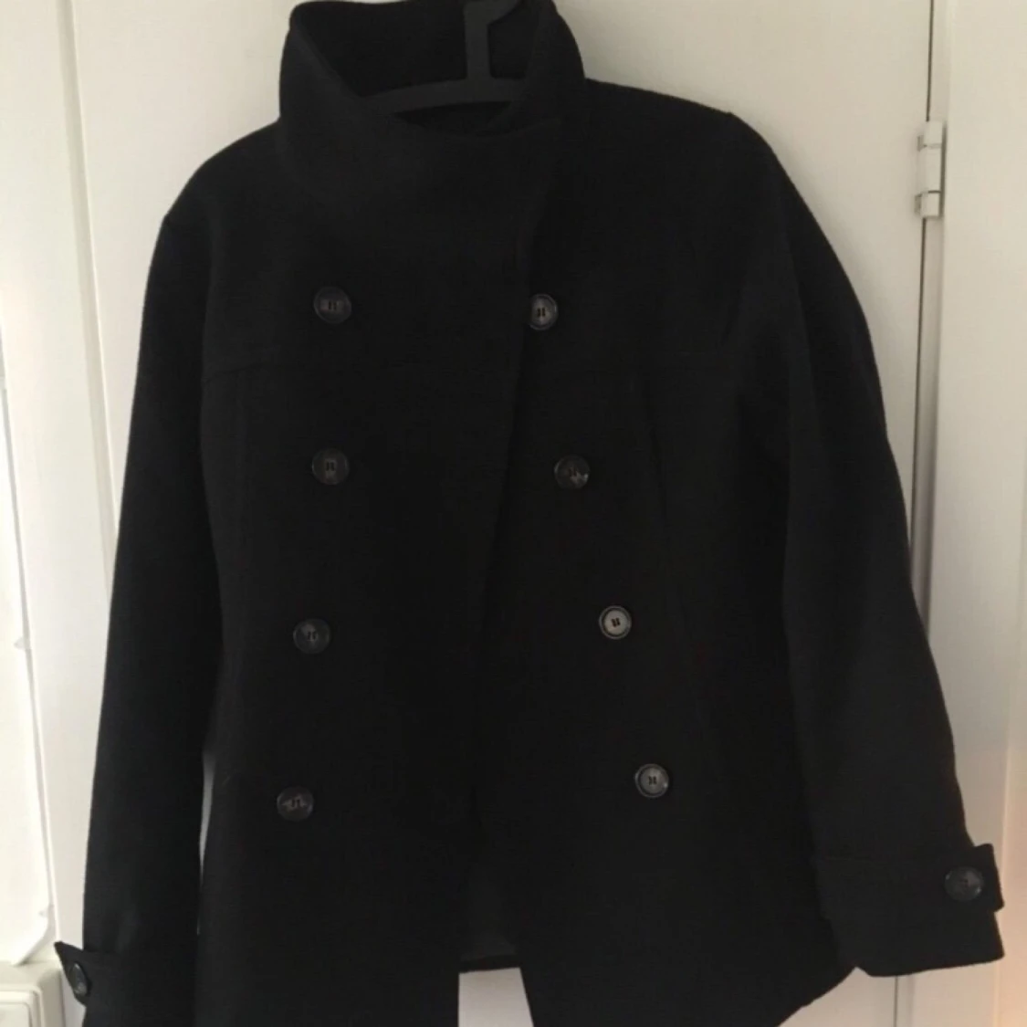 Svart kappa med krage och knappar