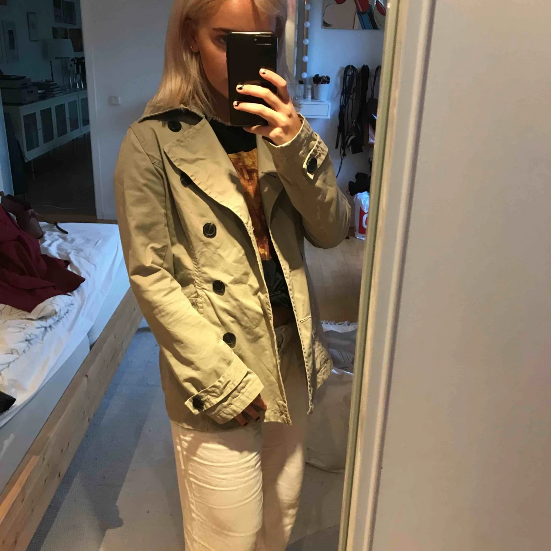 Beige kappa från H&m strl 34 ganska stor i storleken den är lite lång för mig i armarna annars sitter den bra, använd ca 5 ggr