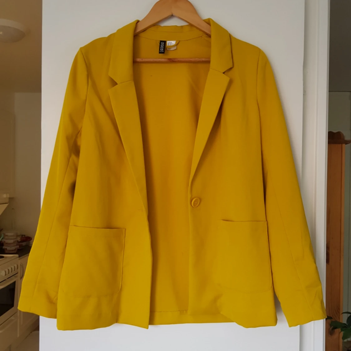 Supersnygg gul kavaj från H&M i storlek 38. Använd ett fåtal gånger. Kan mötas i Uppsala, eller så står köparen för frakt. 🌸