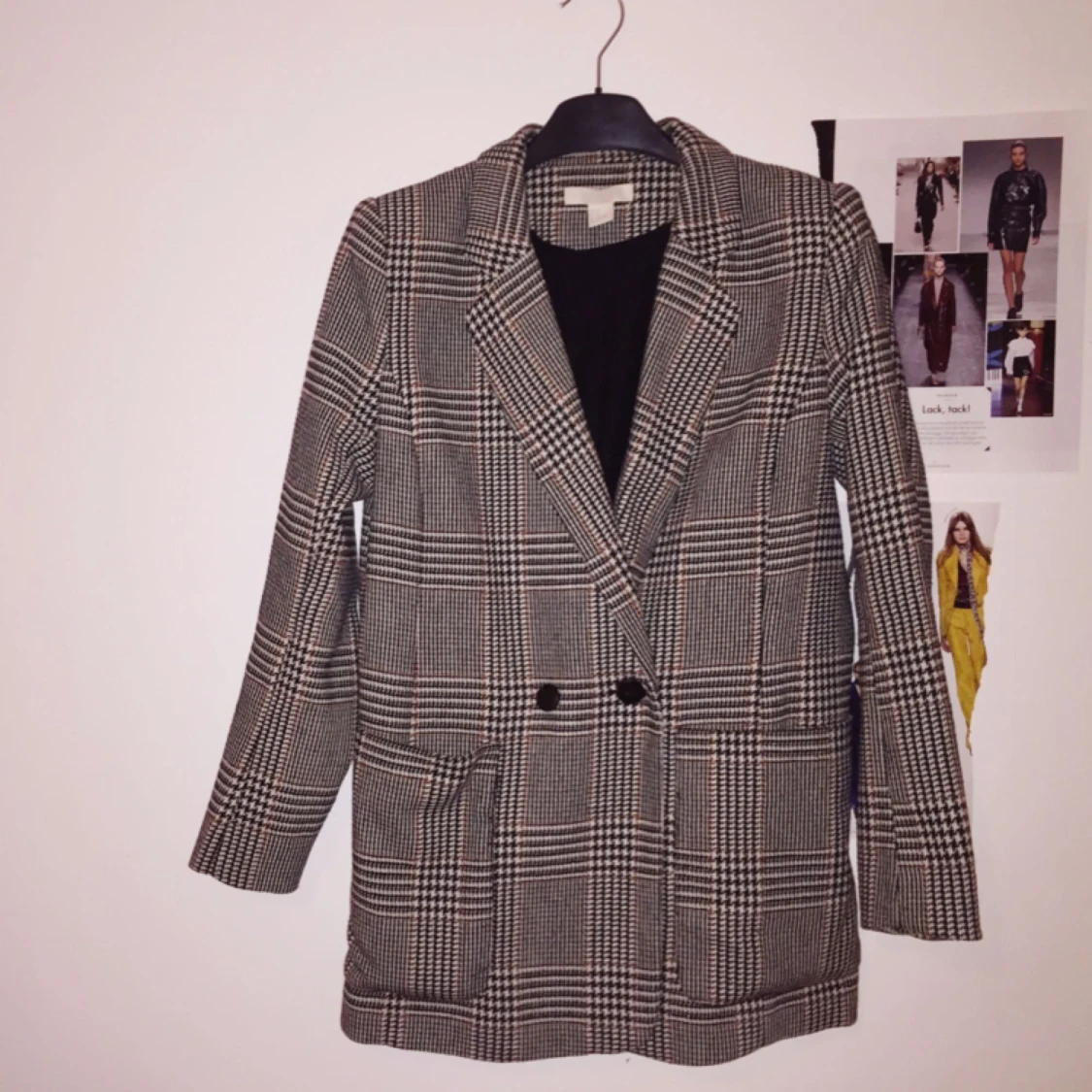 Superfin hundtandsmönstrad kavaj från H&M i ullblandning - varm och perfekt för höst/vinter. Använd ett fåtal gånger, fint skick! Kan hämtas upp i Stockholm eller skickas mot frakt.