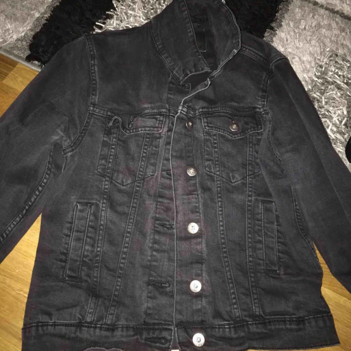 vintage svart/grå jeansjacka i storlek S Bra skick och säljs för den är för liten för mig