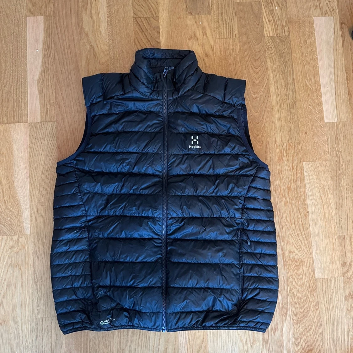 Snygg svart dunväst från Haglöfs med quiltad design och hög krage. Västen har dragkedja framtill och diskret logga på bröstet. Perfekt för lager-på-lager och outdoor-vibes. Lätt och smidig att bära, passar till många olika outfits.