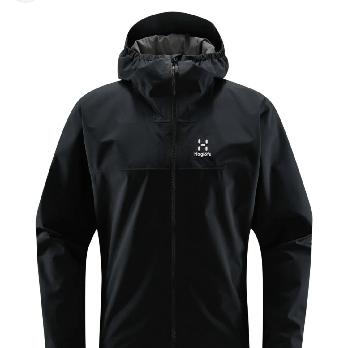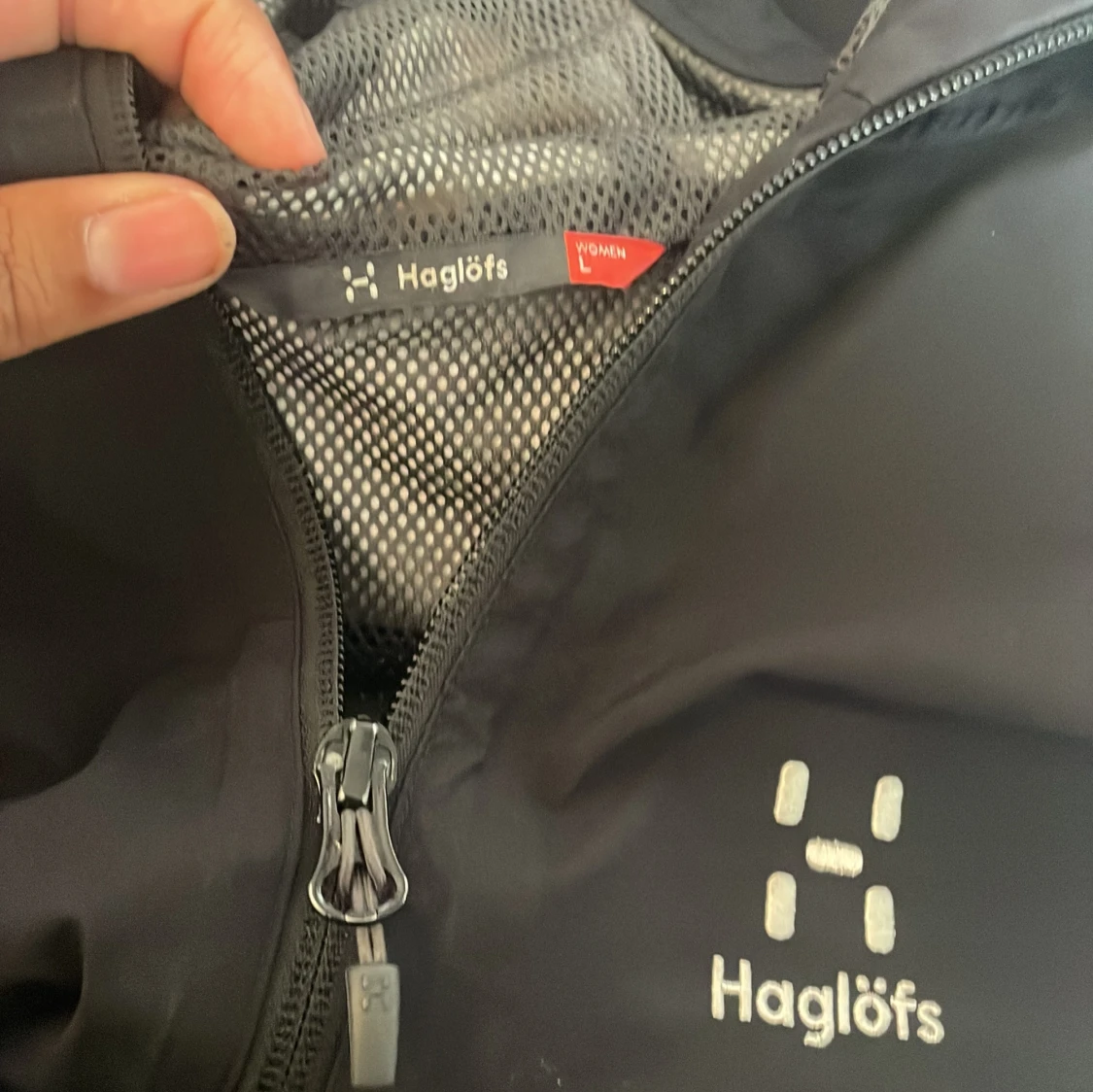 Snygg svart vindjacka från Haglöfs i dammodell, storlek L. Jackan har hel dragkedja, huva och meshfoder på insidan för extra komfort. Perfekt för blåsiga dagar och outdoor vibes. Klassisk logga på bröstet och stilren design.