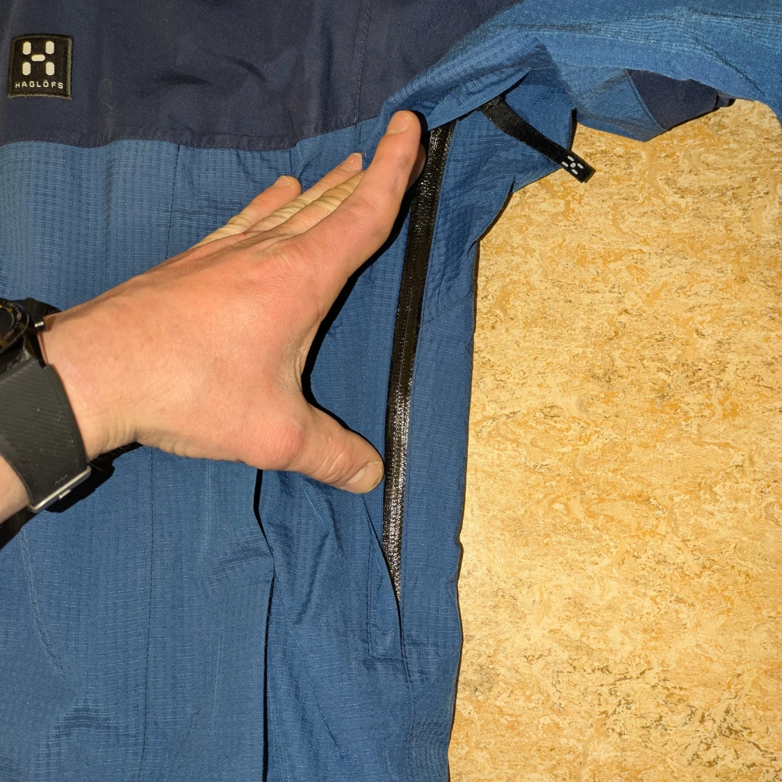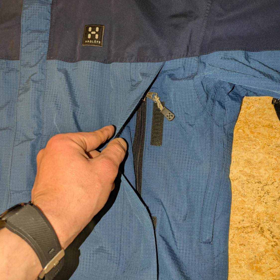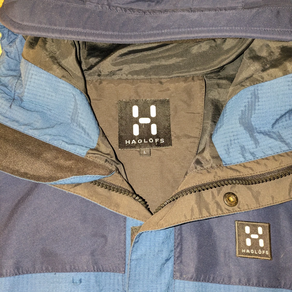 Säljer en blå jacka från Haglöfs i storlek L med en luva man kan vika in. Jackan har en stilren design med mörkare blå detaljer och praktiska fickor med dragkedjor. Möts upp i centrala Göteborg eller så kan jag skicka via post om det önskas! Pris kan diskuteras vid snabb affär!!!