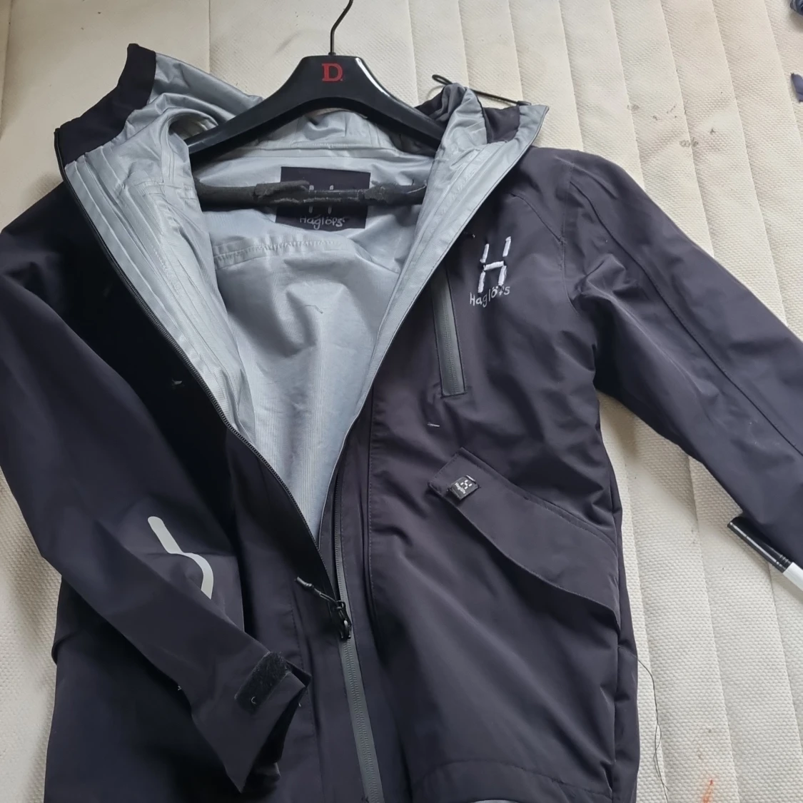 Snygg svart vindjacka från Haglöfs med grå detaljer och justerbar huva. Jackan har flera dragkedjeförsedda fickor, reflexdetaljer på ryggen och är perfekt för blåsiga dagar. Lätt och smidig design med hög krage och smarta funktioner.