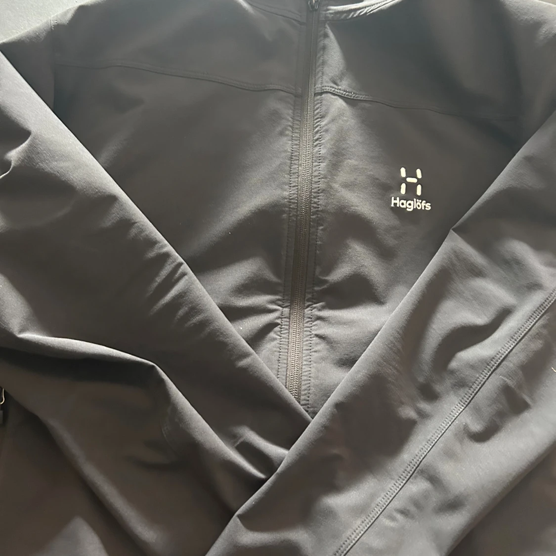 Säljer en svart vindjacka från Haglöfs i storlek L. Jackan har minimalistisk design med dragkedja framtill och diskret Haglöfs-logga på bröstet. Perfekt för dig som gillar stilren och funktionell ytterjacka. Långärmad och lätt material.