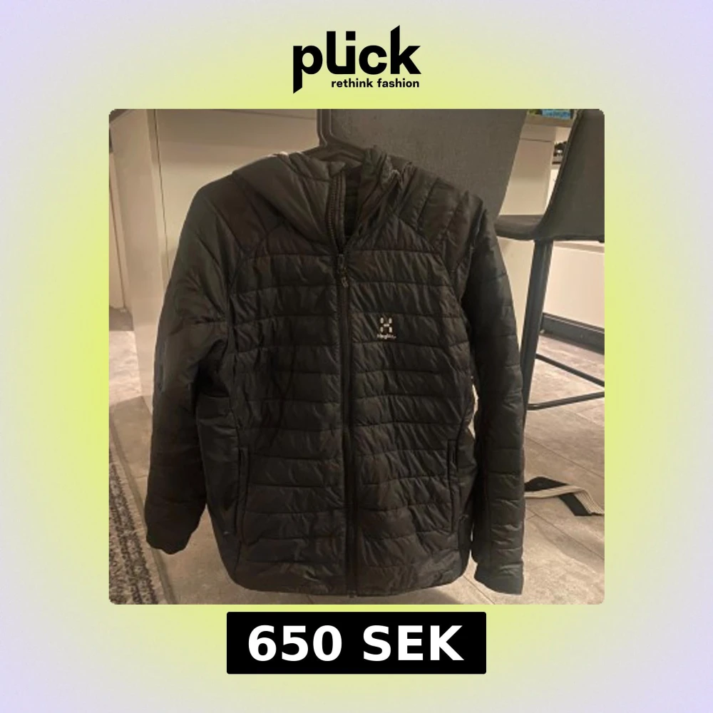 Svart pufferjacka från Haglöfs, dammodell i storlek M. Jackan har huva, quiltad design och dragkedja framtill. Perfekt för kyliga dagar och har en stilren look med diskret logga på bröstet. Materialet är syntet och jackan är långärmad. Finns två jätte små hål längst ner på armen på baksidan, men inget man varken ser eller tänker på! Köpte för 800kr för mindre än ett år sedan