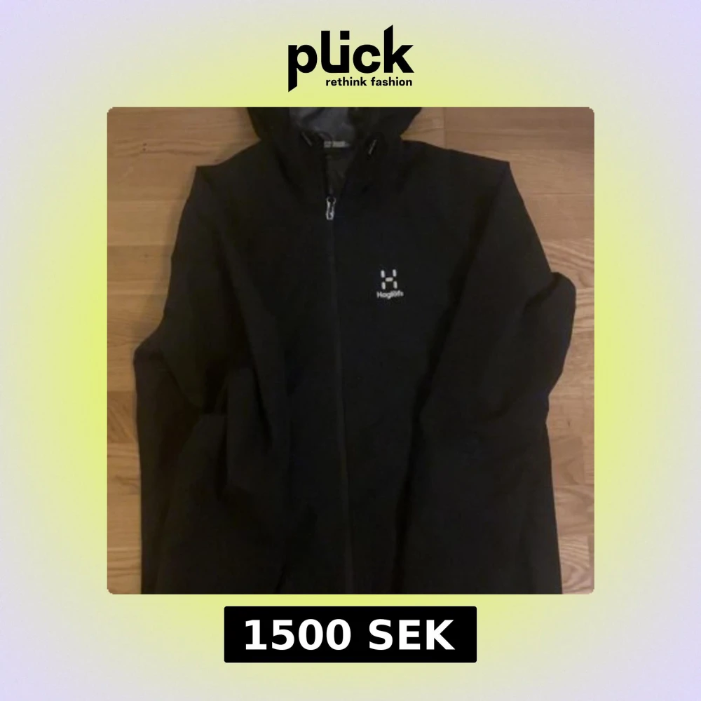 Svart Haglöfs Kaise GTX jacka i storlek M. Jackan har huva, hel dragkedja och minimalistisk design med diskret logga på bröstet. Tillverkad i slitstarkt syntetmaterial och perfekt för blåsiga eller regniga dagar.