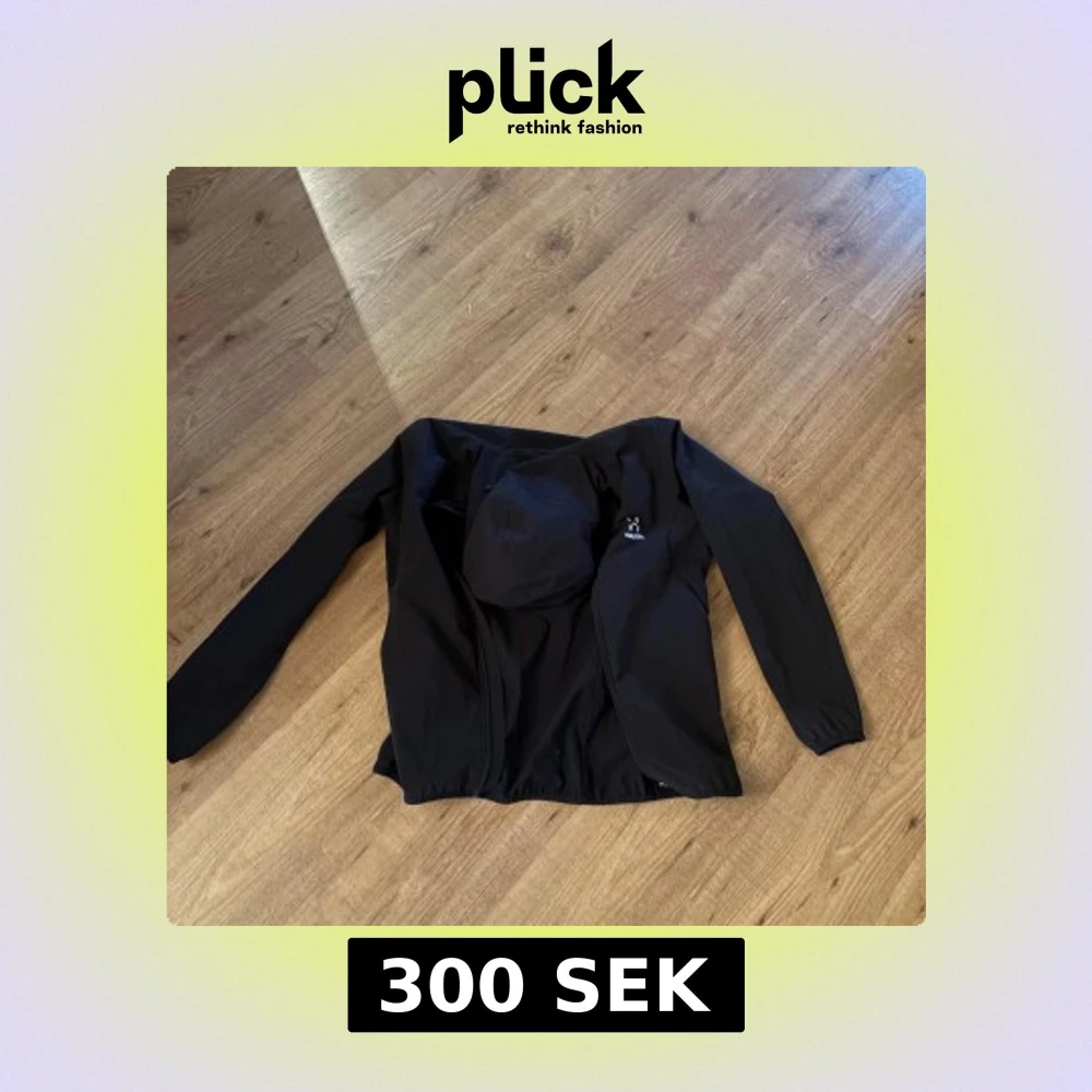 Svart vindjacka från Haglöfs med stilren design och praktisk huva. Jackan har dragkedja framtill, elastiska ärmslut och diskret logga på bröstet. Perfekt för blåsiga dagar och outdoor-aktiviteter. Materialet är lätt och syntetiskt för smidig rörelse.