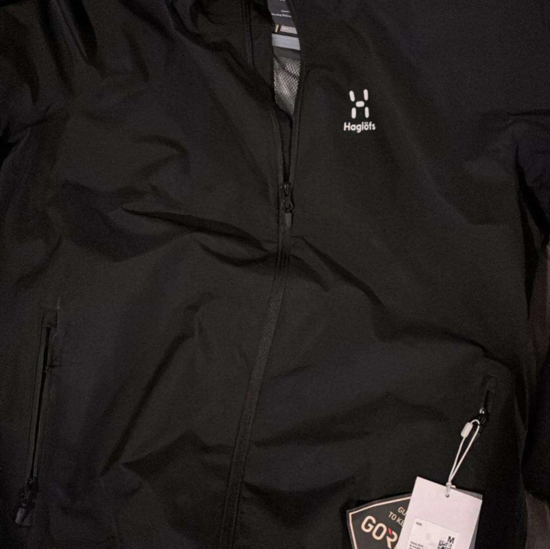 Svart vindjacka från Haglöfs med stilren design och diskret logga på bröstet. Jackan har dragkedja framtill och praktiska fickor med dragkedja. Tillverkad i slitstark syntet med GORE-TEX-teknologi som håller dig torr och bekväm. Helt nya! Storlek S/M/XL