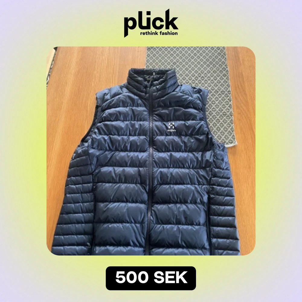 Marinblå haglöfs väst, är i storlek M men passar S också Skicket på västen är jättebra och finns inget slitage.