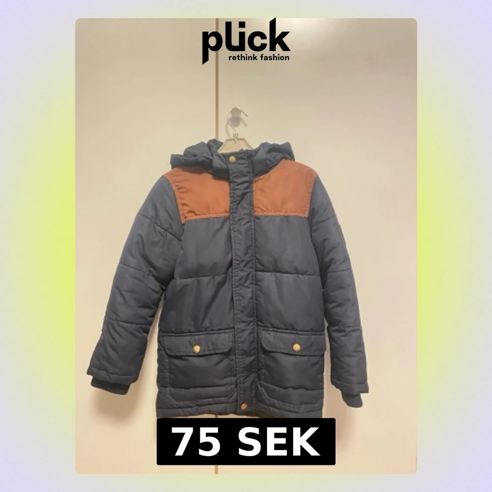 Snygg mörkblå pufferjacka från Hampton Republic med bruna axelpartier och huva. Jackan har guldiga knappar, två stora fickor framtill och broderad logga på ärmen. Perfekt för kalla dagar och har en schysst, lite sportig vibe.
