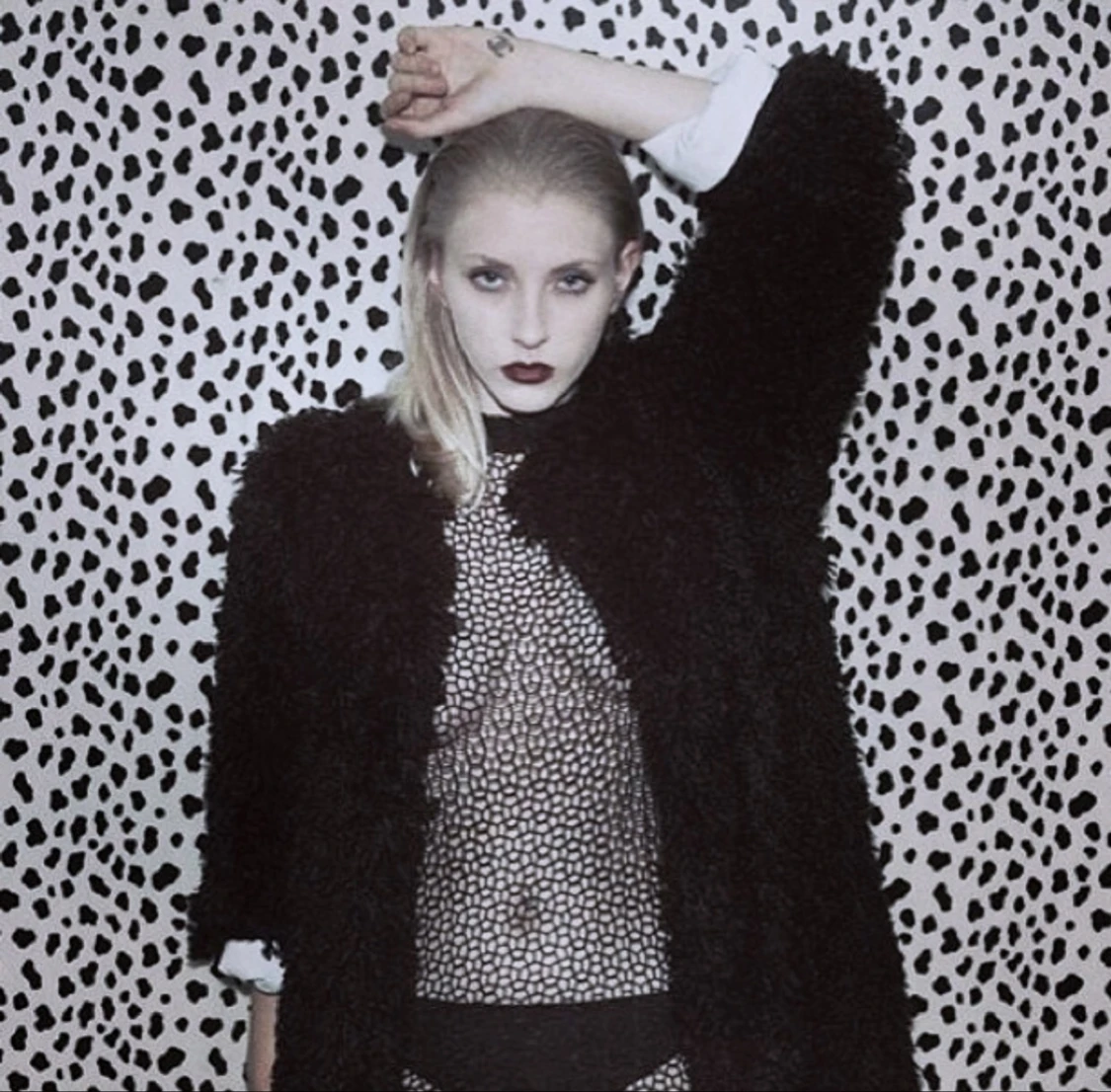Handsydd fuskpäls i svart med vitt foder. 100% polyester, akryl Skick : använd med i bra skick