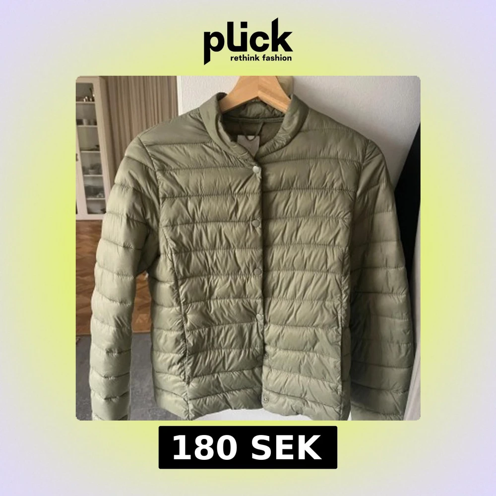 Uniqlo liknande! Snygg olivgrön pufferjacka från H&M i storlek 36. Jackan har en stilren, krage utan huva, knäppning med tryckknappar och horisontella quiltade sömmar. Perfekt för kyliga dagar och enkel att matcha med din vardagsstil.