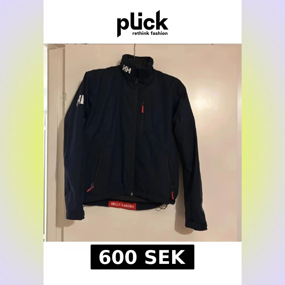 Säljer en marinblå vindjacka från Helly Hansen med HH-logga på kragen och axeln. Jackan har hög krage, dragkedja framtill och praktiska fickor med röda detaljer. Perfekt för dig som vill ha en sportig och stilren look. Passar bäst 170-172 typ men är inte helt säker