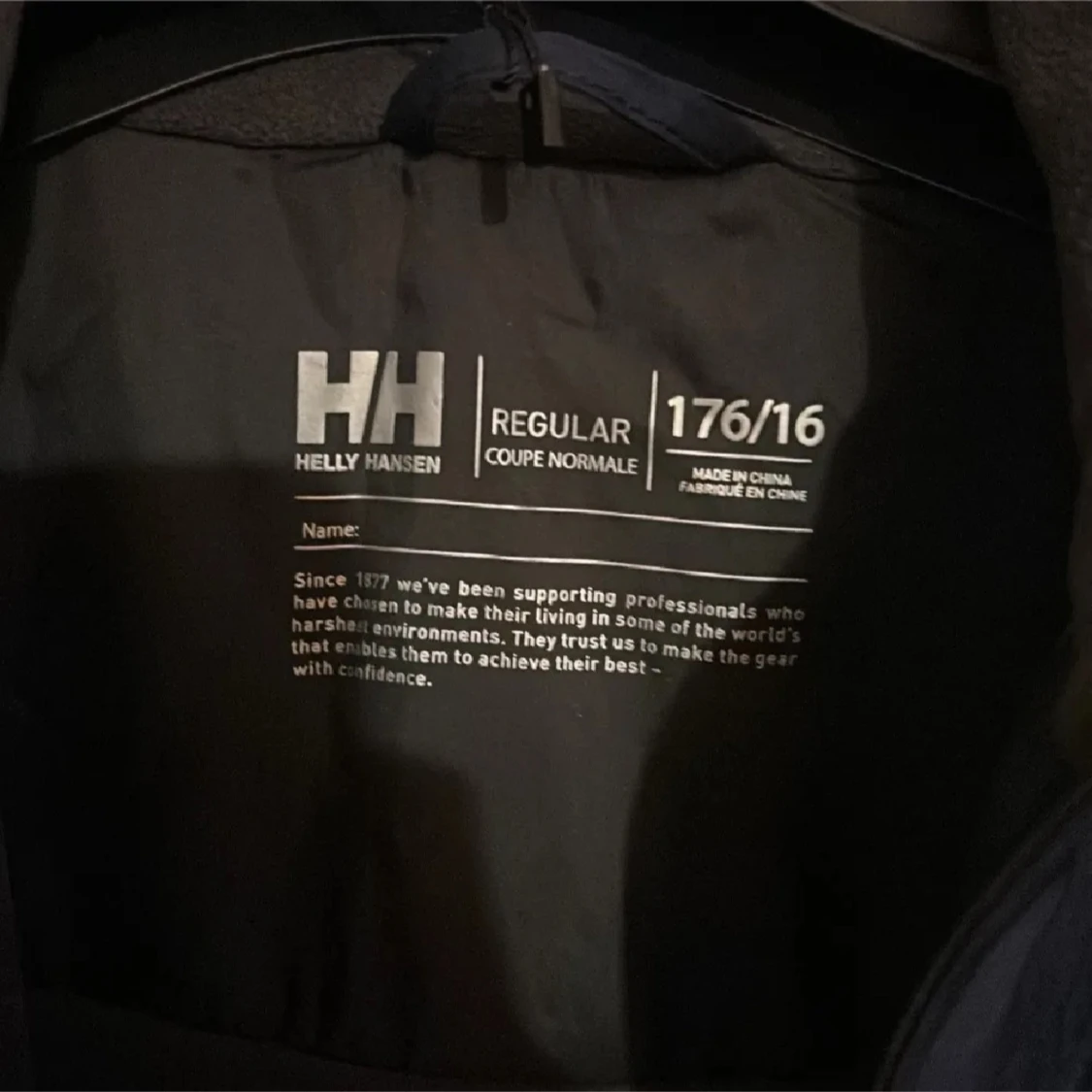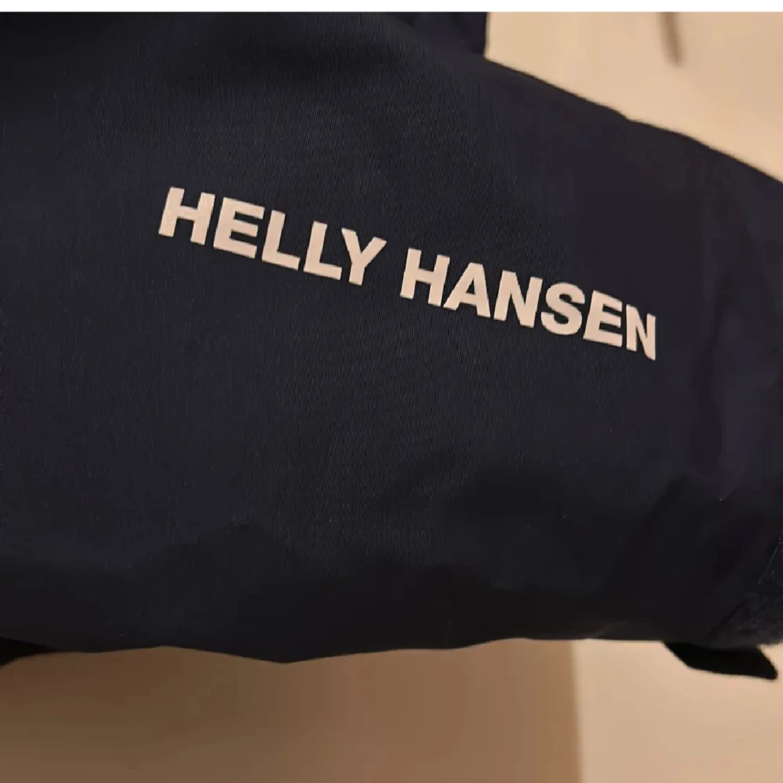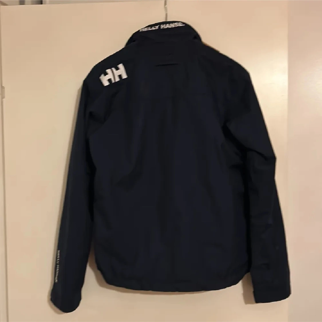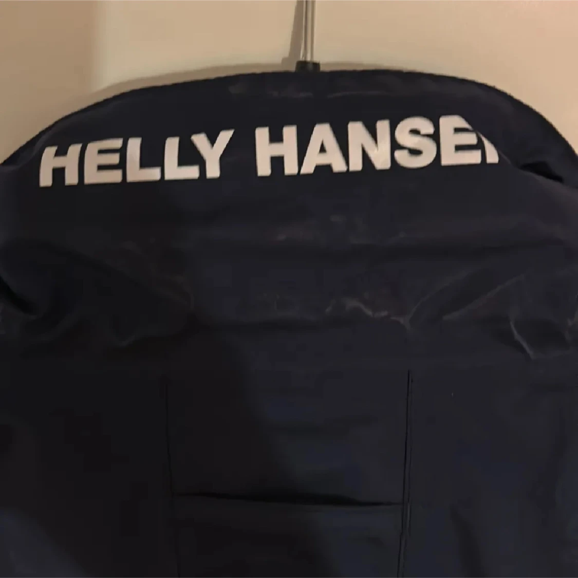 Snygg marinblå vindjacka från Helly Hansen med vit logga på kragen, axeln och ryggen. Jackan har dragkedja framtill med röda detaljer, två sidofickor med dragkedja och hög krage. Perfekt för blåsiga dagar och outdoor-aktiviteter. Man bör vara 165-172 för att den ska passa bra enligt mig