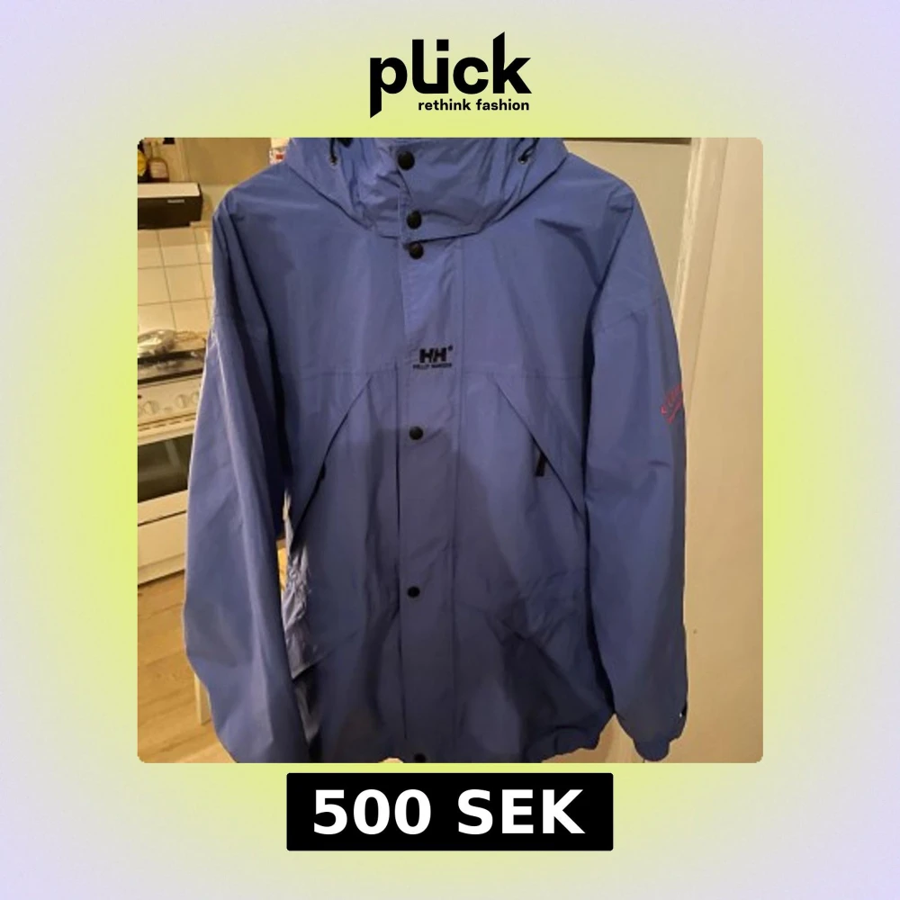 Säljer en blå vindjacka från Helly Hansen med huva och knappar framtill. Jackan har en klassisk design med två fickor och justerbar huva. Perfekt för segling, skidor eller bara kalla vinterdagar!