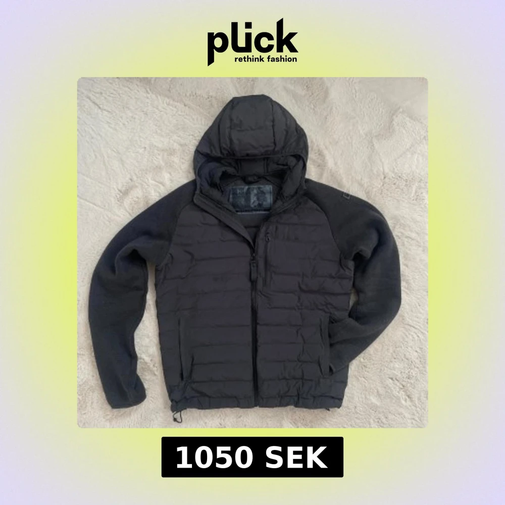Säljer en mörkgrå cardigan från Helly Hansen i storlek L. Jackan har huva, dragkedja framtill, bröstficka med dragkedja och snörning i nederkant. Ärmarna är i mjukare material och kroppen är quiltad för extra värme.