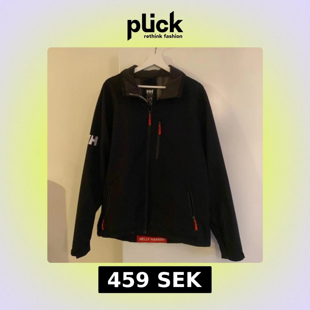 Svart vindjacka från Helly Hansen med röda dragkedjor och HH-logga på ärmen. Jackan har ståkrage, hel dragkedja framtill och två fickor med dragkedja. Perfekt för blåsiga dagar och enkel att matcha med det mesta.