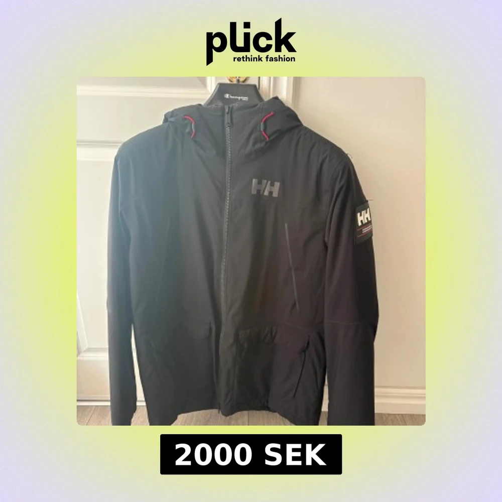 Svart jacka från Helly Hansen med luva. Jackan är i mycket bra skick, nypris 2500 kr. Skriv vid frågor!!