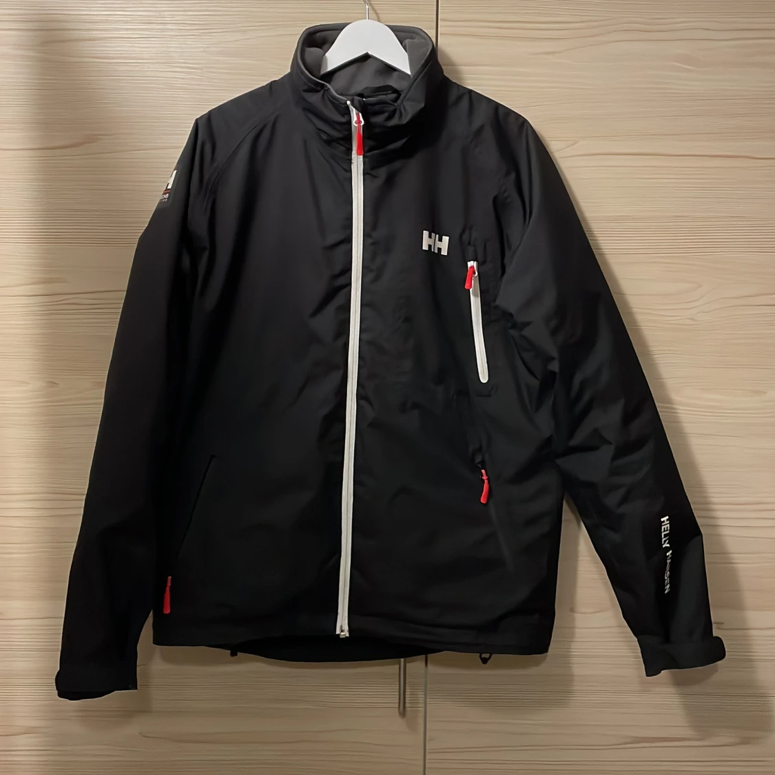 Svart vindjacka från Helly Hansen med vita och röda detaljer. Jackan har hög krage, flera dragkedjeförsedda fickor och HH-logga på bröstet och ryggen. Perfekt för blåsiga dagar och har en sportig look med snygg passform.