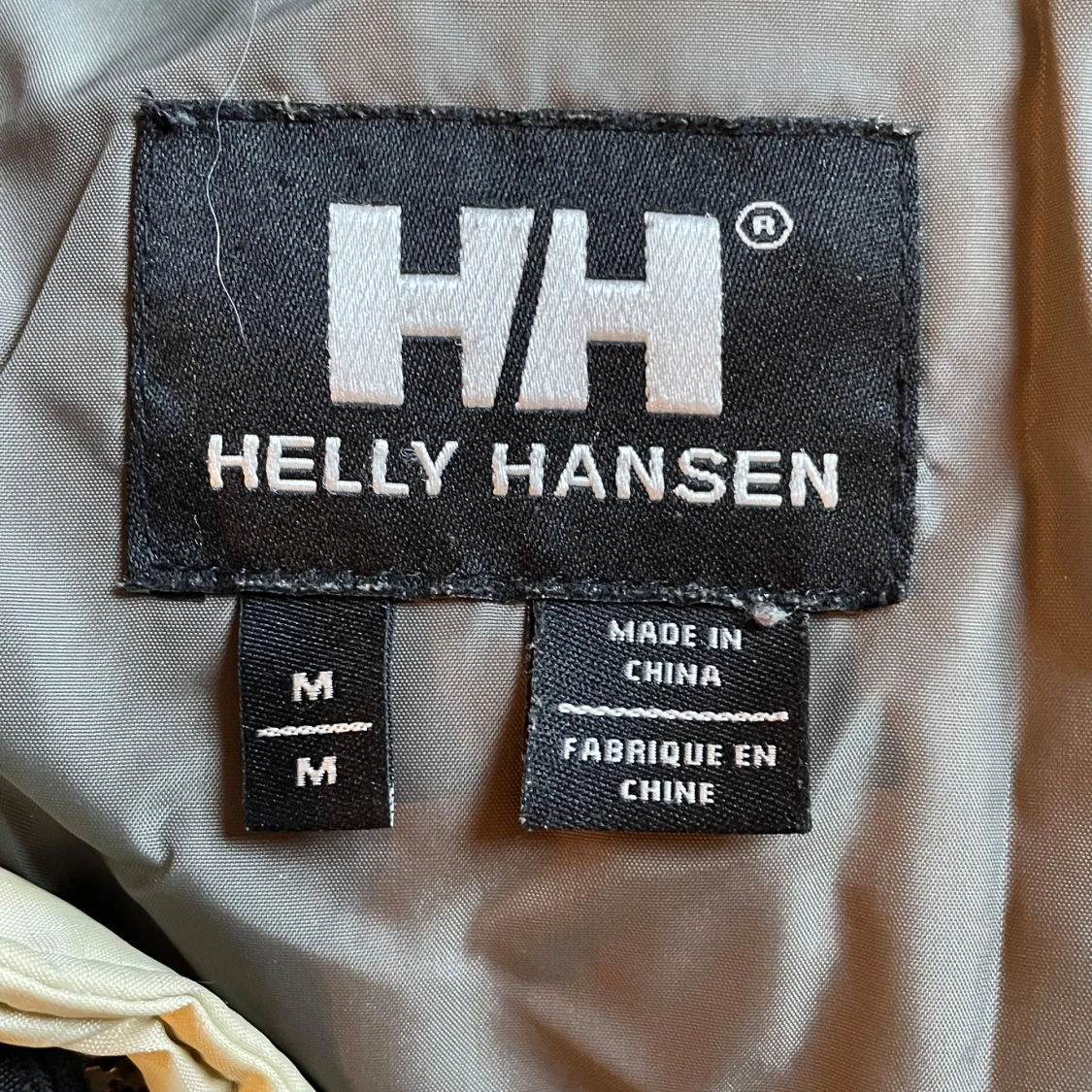 Säljer en beige och svart dunjacka från Helly Hansen i storlek M. Jackan har hög krage, två stora fickor framtill och dragkedja. Perfekt för kalla dagar med sin quiltade design och sportiga look. Klassisk logga nertill på framsidan.
